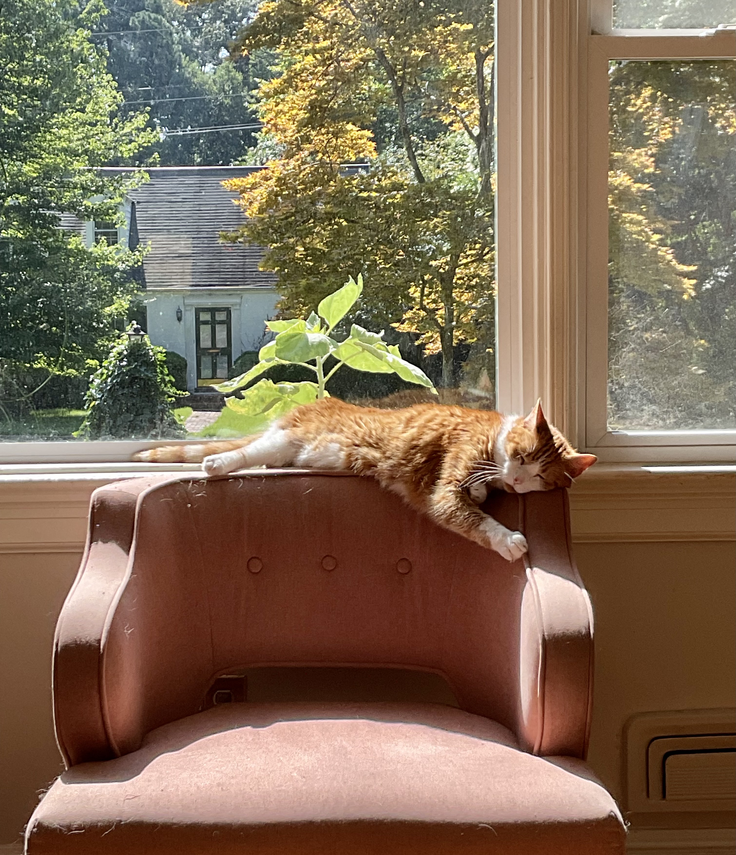I’ll close another blog post with Dash. He was snoozing on the living room windowsill yesterday morning around 10:00. Notice my sunflower slowly growing behind him. I put that seed in the ground on April 21. It’s ~6.5’ tall as I type these words. It’s not bursting with good health, but it may get another foot or two (or more) taller. It’s a fun experiment. Always a great day to take a picture of Dash!