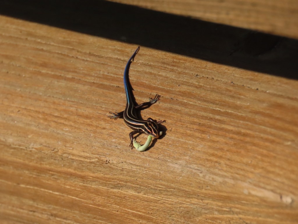 I’ve gotten – as you may imagine – more than a handful of pictures I enjoy since my last blog post. I normally don’t have a favorite picture after one week between blog posts and I really don’t have one this time. But a few weeks back I saw this Five-lined skink (Plestiodon fasciatus) with what appears to be an inchworm in its mouth; it’s a nice picture. Unless of course you’re the inchworm: