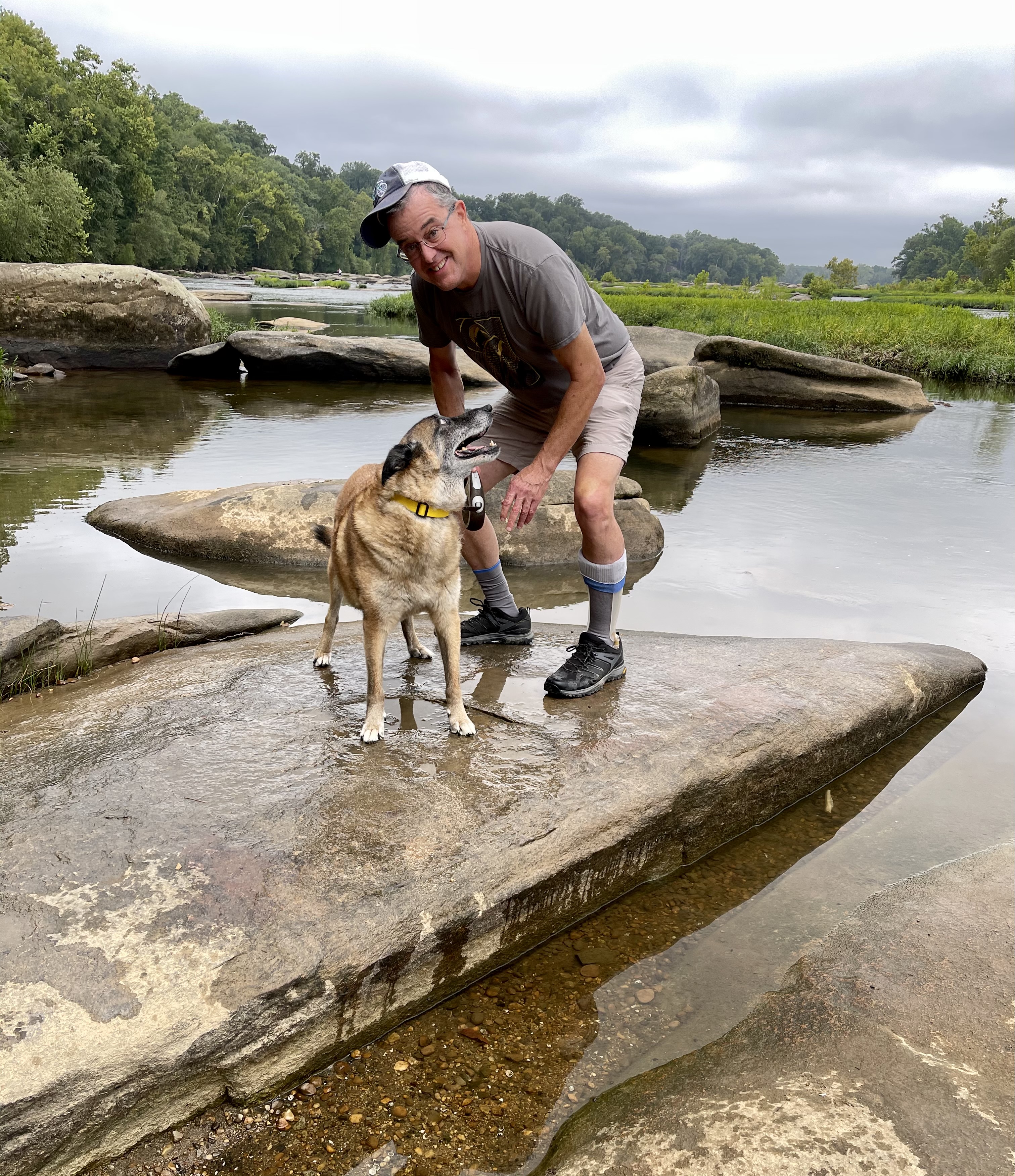 Another thing mom and dad understood was you don’t sit around and hope you’ll finally begin to feel better. Like most excellent things, feeling better takes energy and effort. Walking with Turner at the river is an outstanding way to wake up. Fortunately I was registered for and more or less trained for a short triathlon. I rode up to Luray, Virginia in August with my friend Pat and his wife Megan and the three of us completed the Luray Sprint Triathlon. Megan got an award in her age group! Crazy. I didn’t photograph it (I finished almost an hour after her!) but it was awesome. As usual I got a finisher’s medal, shown here. My first triathlon was at William and Mary – in 1987! So this finisher’s medal commemorates my thirty-four years as a triathlete! I just sorted the race results of the Luray race by age. There were sixty-seven finishers who hadn’t been alive as long as I’ve done triathlons! And this was a small race! I loved it. Here’s my awesome finisher’s medal: