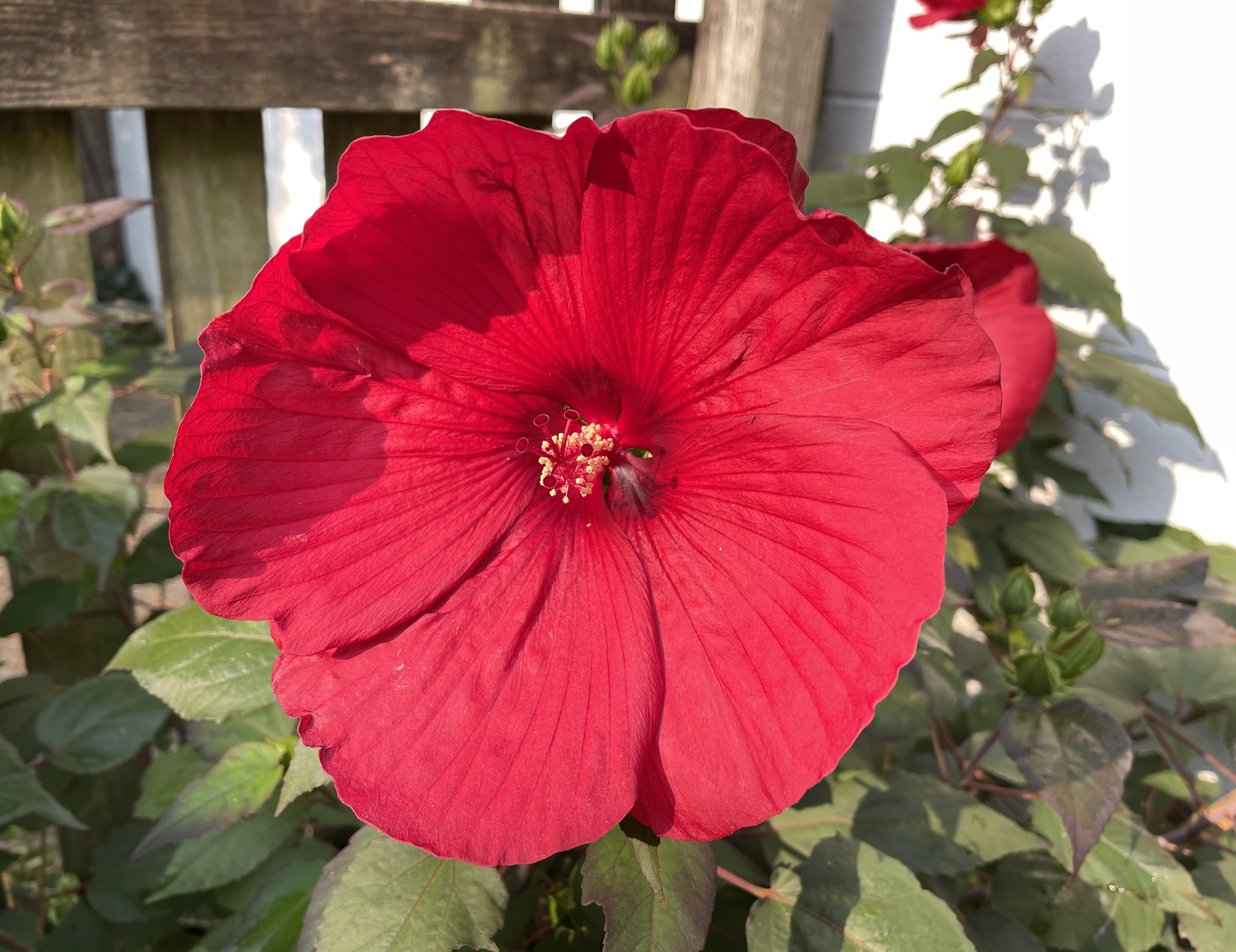 I changed my mind about closing! I will instead close with another magnificent hibiscus that Ev has growing in our backyard. True story – I have the most enormous iPhone ever manufactured by Apple, but it does not begin to cover one of these blooms. They are just enormous. I hope to put up another blog post next week. Meanwhile, enjoy this one! All best,