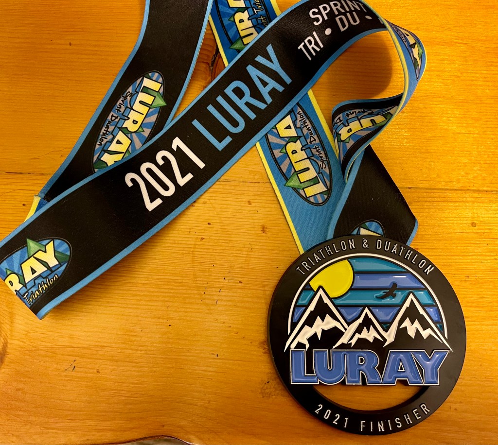 Finisher’s medal from the Luray Sprint Triathlon – 8/22/2021