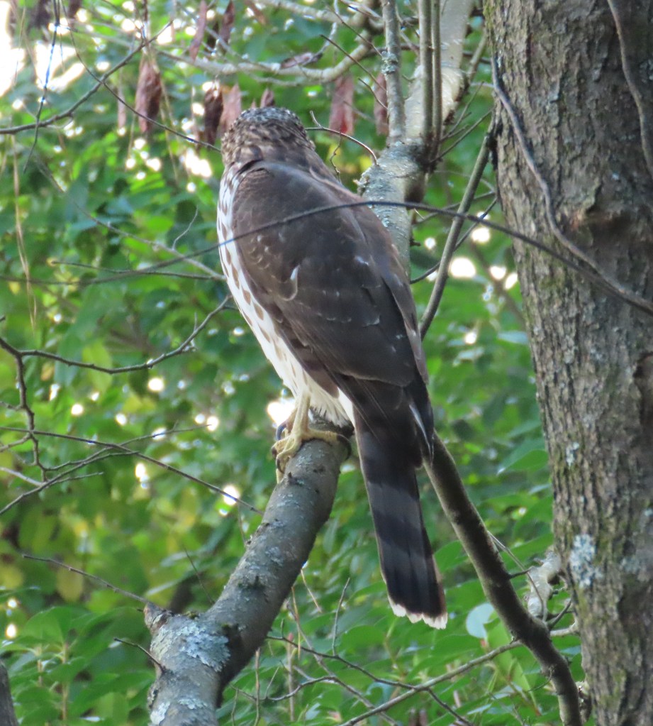 Ironically – somewhat ironically – I was standing with the same friend in the driveway of his house (five miles from Deep Run as the hawk flies) a month earlier when I looked up in a Tulip poplar (Liriodendron tulipifera) and saw this one sitting on a branch: