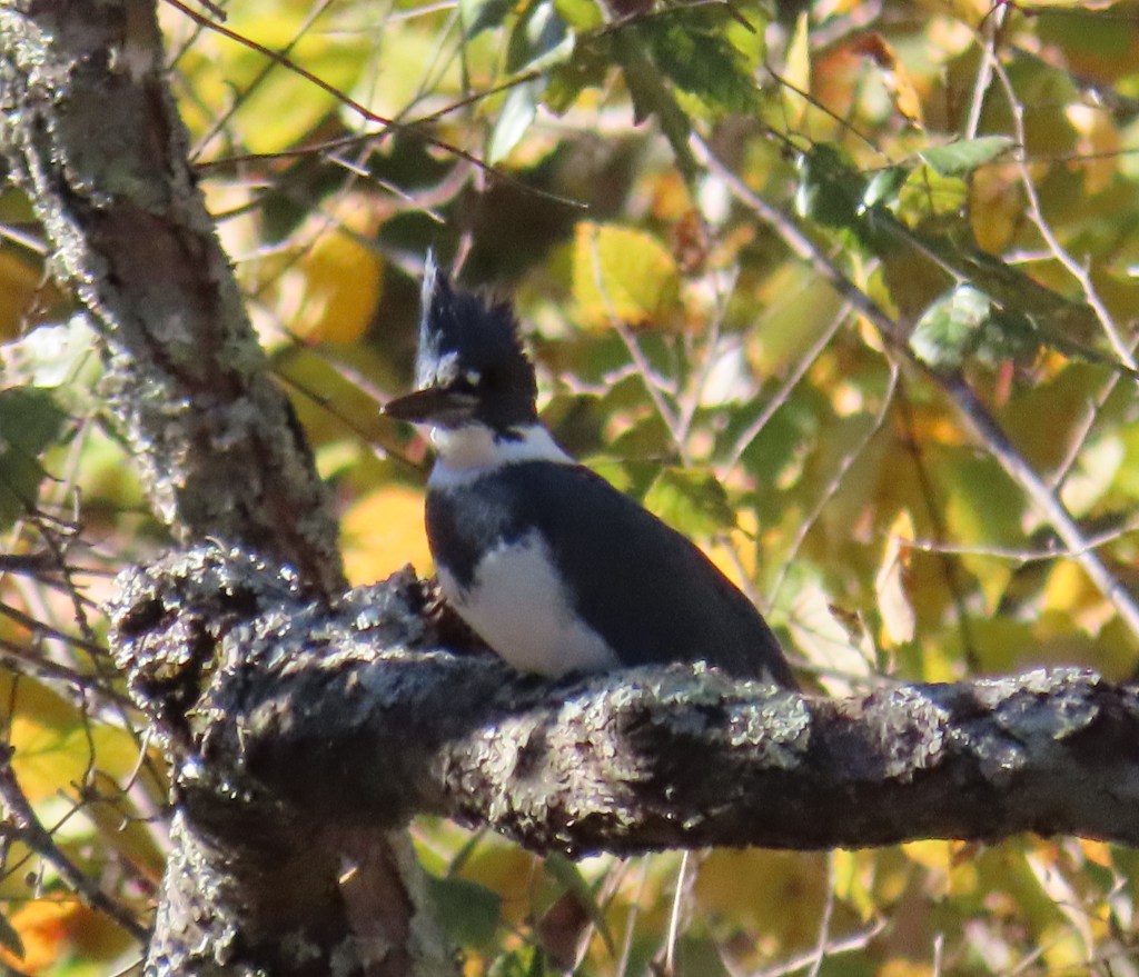 Wait – I almost left out a crucial (to me) bird. Kingfishers are really, really (for me) hard to photograph. They’re even hard to see, and I hardly ever see them stop. They fly, fly, fly. In almost all birds (think cardinals), if there is an appearance difference between genders, the male is the better looking of the two. Everything in this blog is strictly my opinion, but male Kingfishers are much more muted and less colorful than females. This guy stopped in the shade long enough for me to snap a few images: