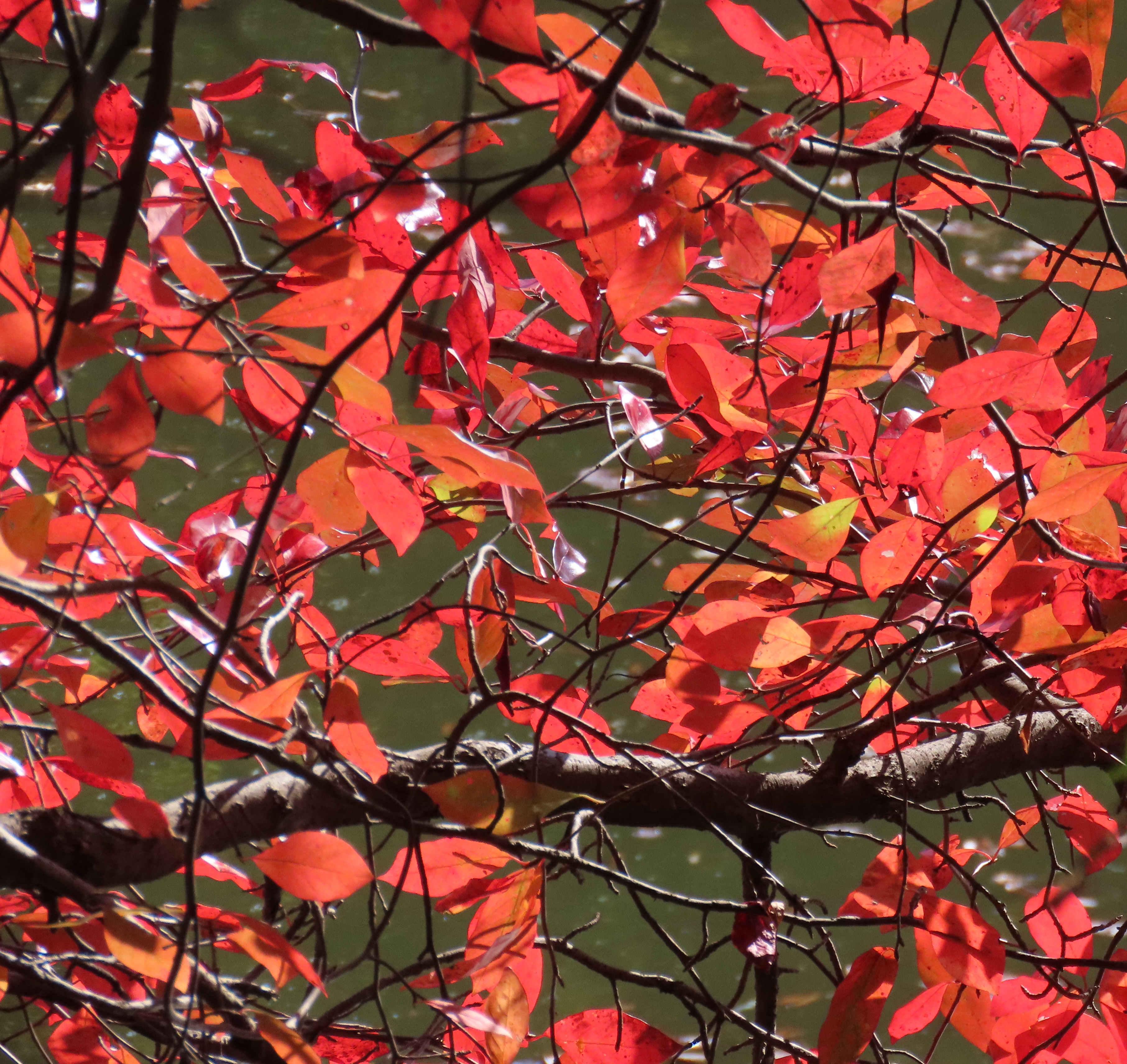 I’ll do a quick segue away from birds and mammals for a moment. I’m not colorblind but autumn leaves are just not something I find thrilling. But I’ve taken two pictures of leaves purely because of their color since my most recent blog post. Alone (IMO) these pictures aren’t worth a great deal. But (again, IMO) they look cool together: