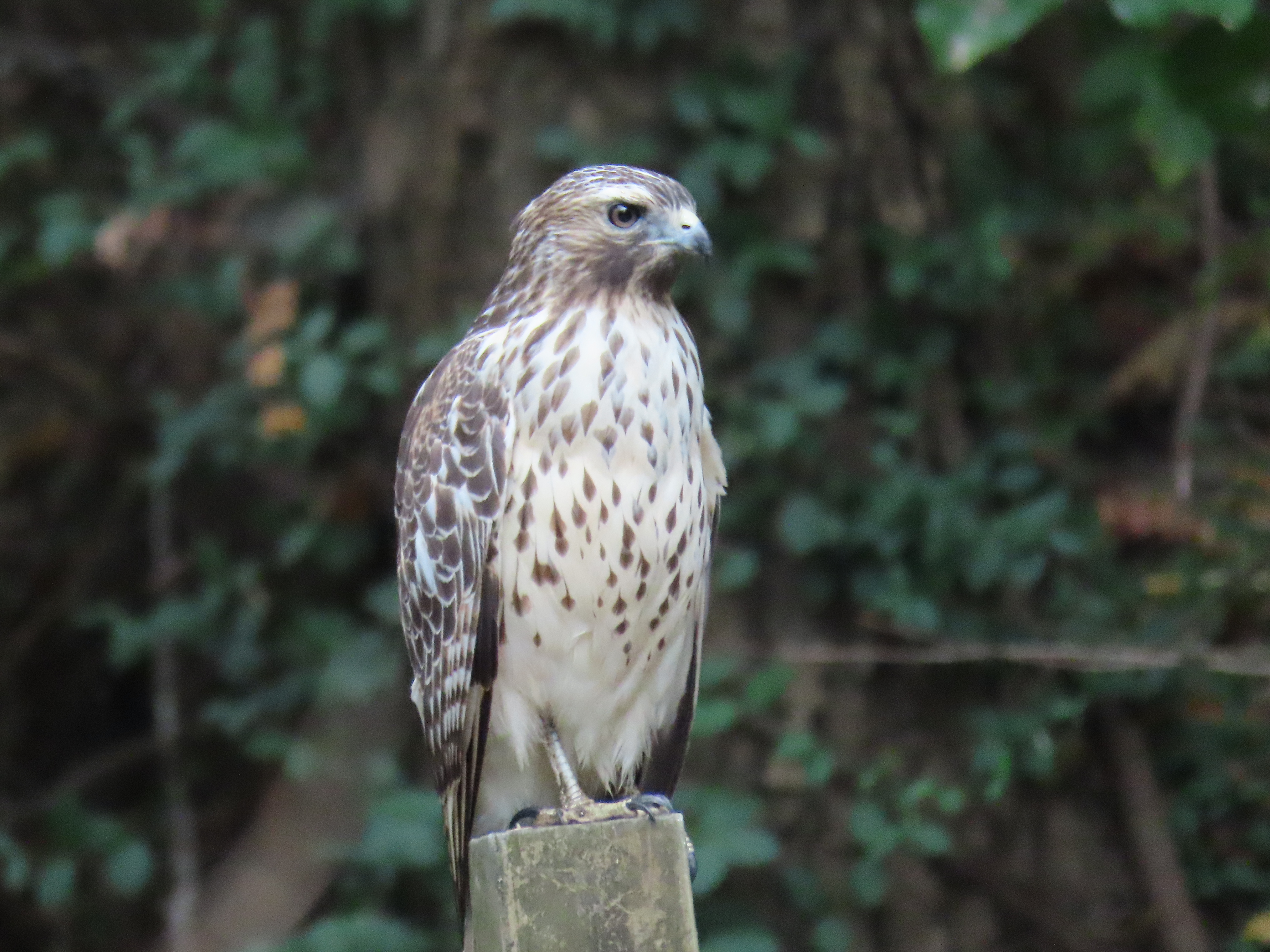 I almost called this post “mostly birds” since as you will learn that would be an equally appropriate title. In six weeks I build up a massive pile of pictures. I have a million favorites. Somehow in late October I went to Pony Pasture on a Friday, though I don’t recall why. I’d just gotten on the trail when I saw a person pointing their cell phone at the creek. I waited politely until they’d moved on then strolled down to see if the object of their interest was still visible. Imagine my delight when I saw this Red-tailed Hawk perched above the pipeline crossing the creek: