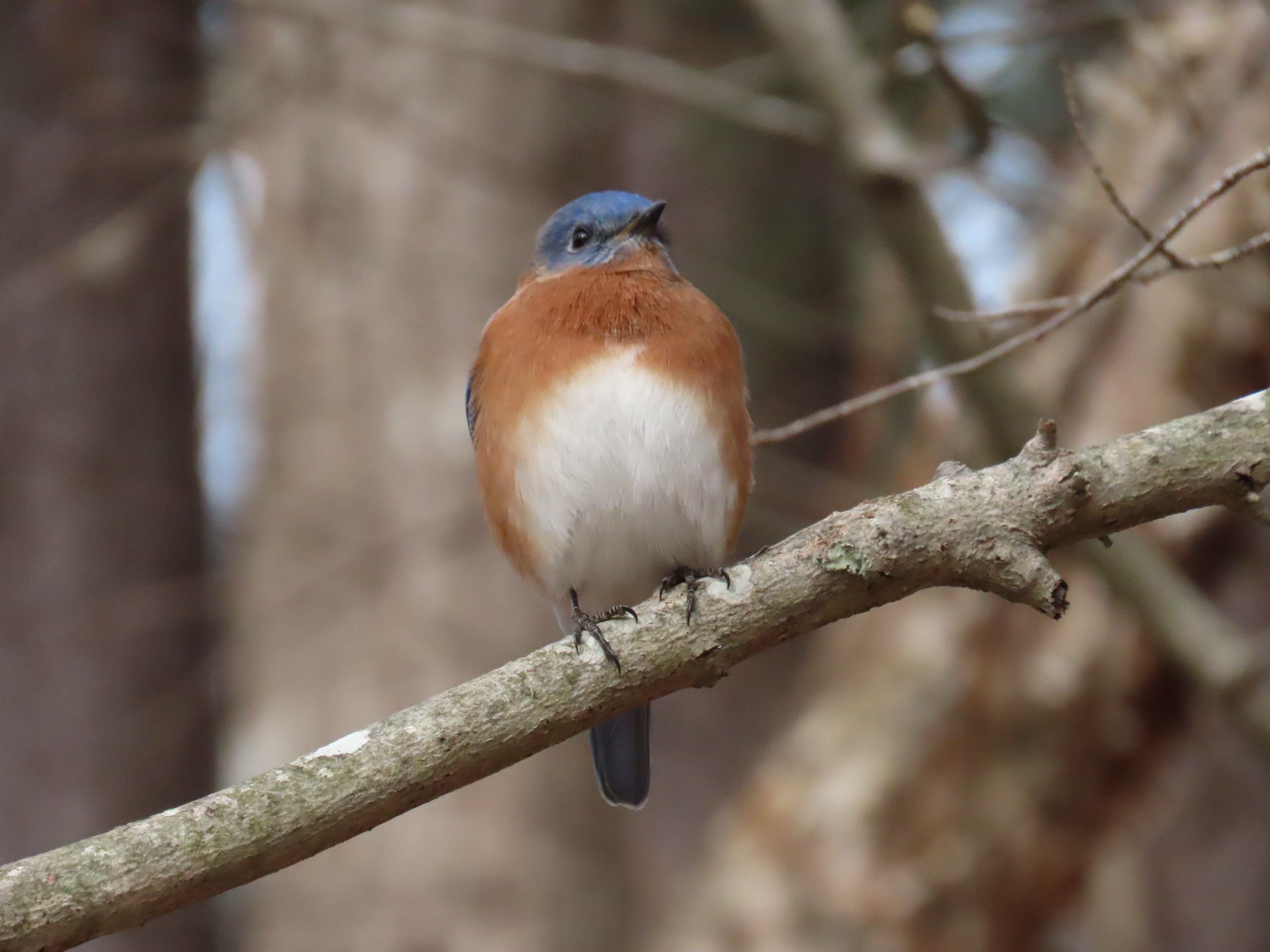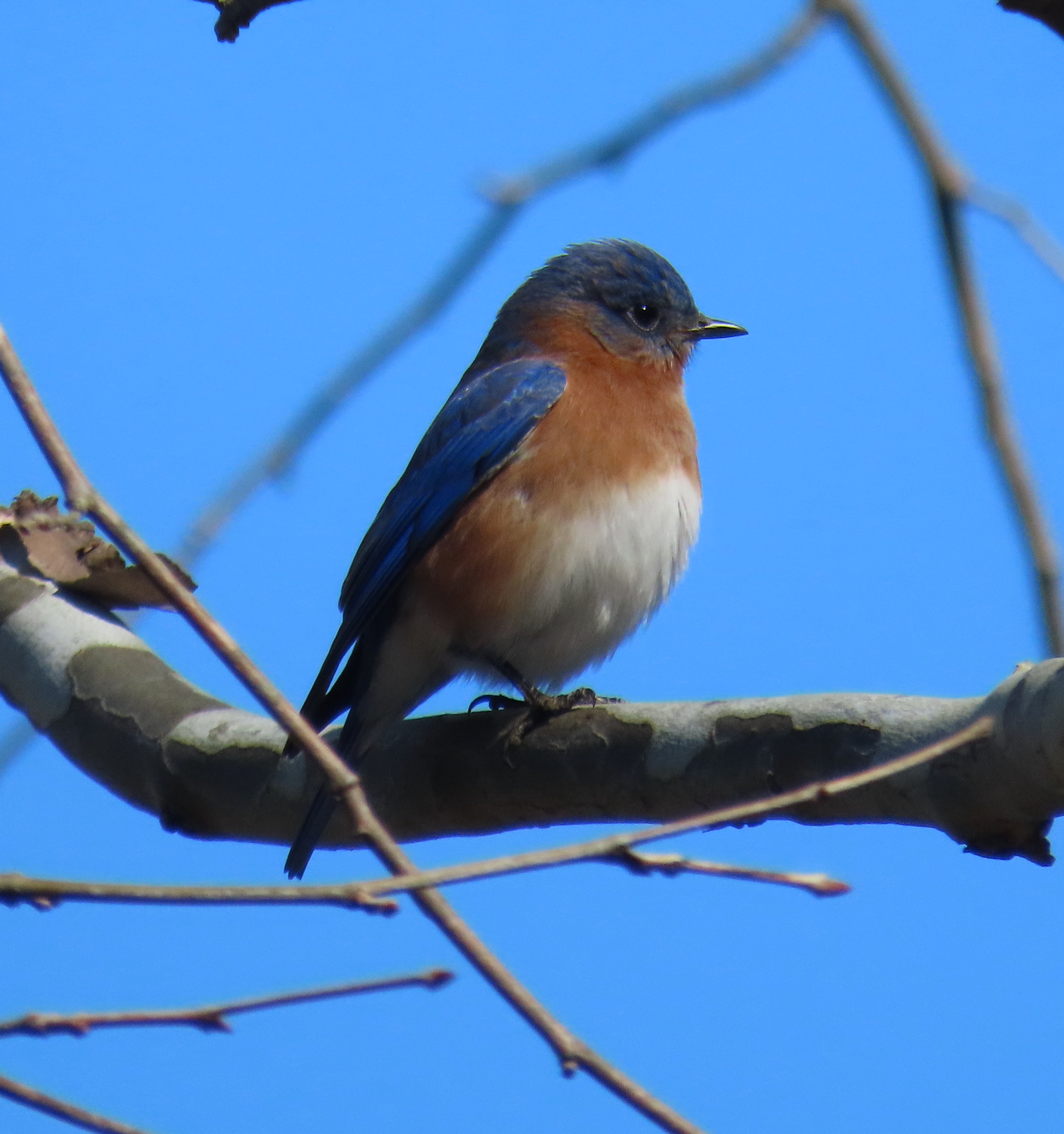 In the first week of 2022 I was hiking at Pony Pasture and caught that lovely bluebird in the sun. He was one of a flock of thirty or more. Two days later I was walking past the same trail intersection and took this picture: