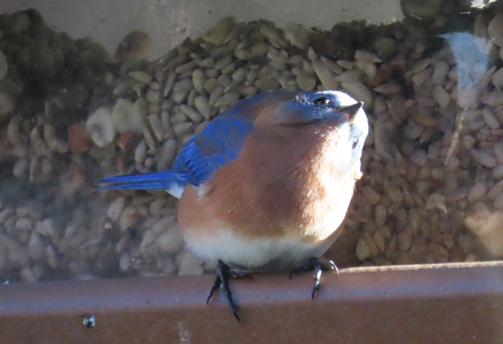 Yikes – hard to believe I almost left these off. I have multiple pairs of Bluebirds visiting my feeders, though I can’t tell one pair from another. But here are two that were on the feeder at around the same time Saturday: