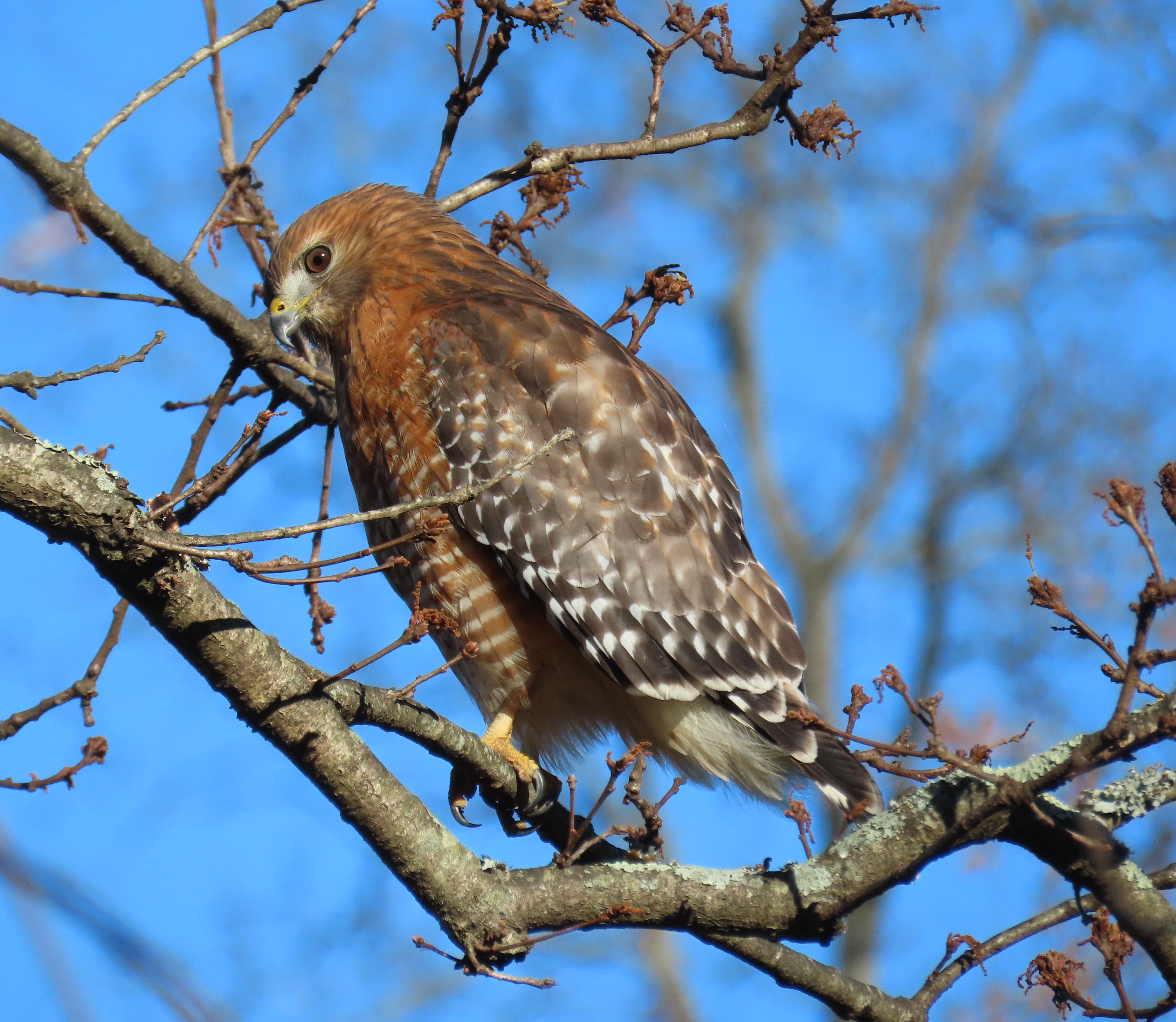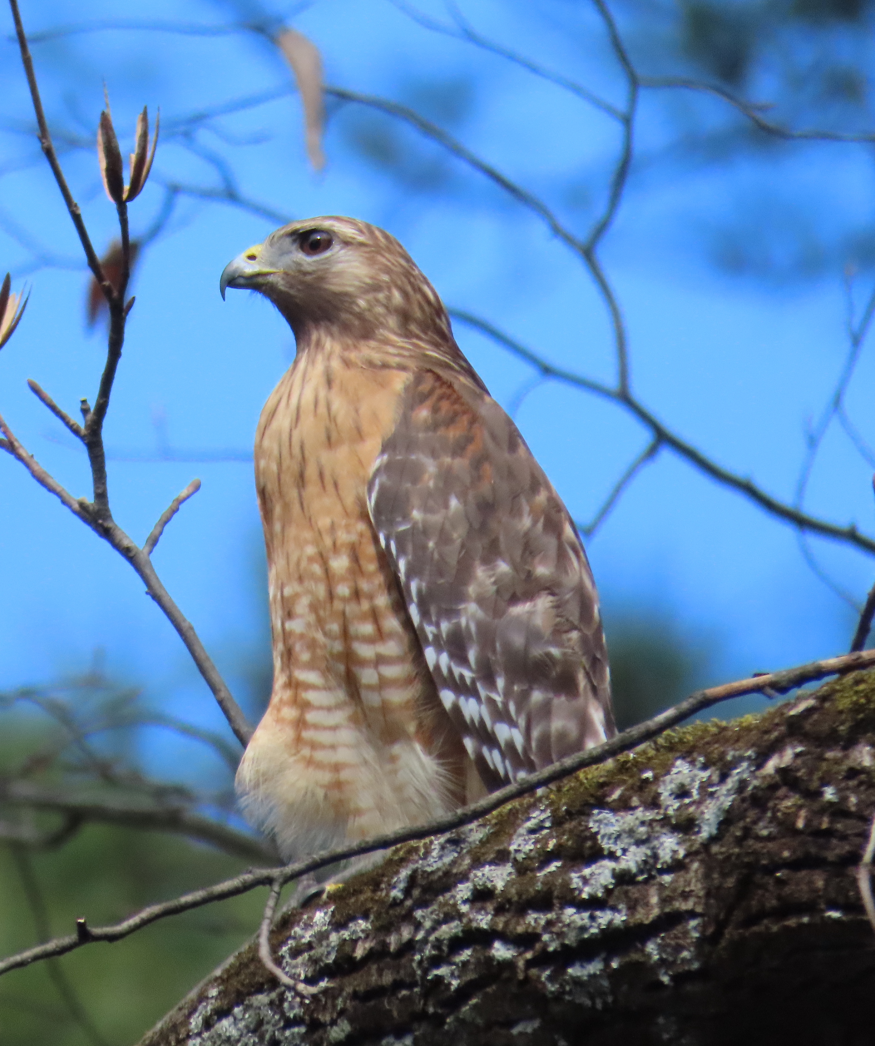Everyone knows I love raptors. I was at Deep Run Park (western Henrico County) with a friend about two weeks ago when someone else started looking at this Red-shouldered hawk (Buteo lineatus) – so I got a chance to photograph it!: