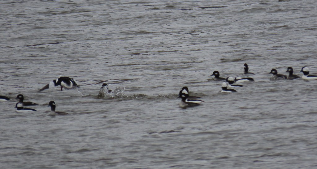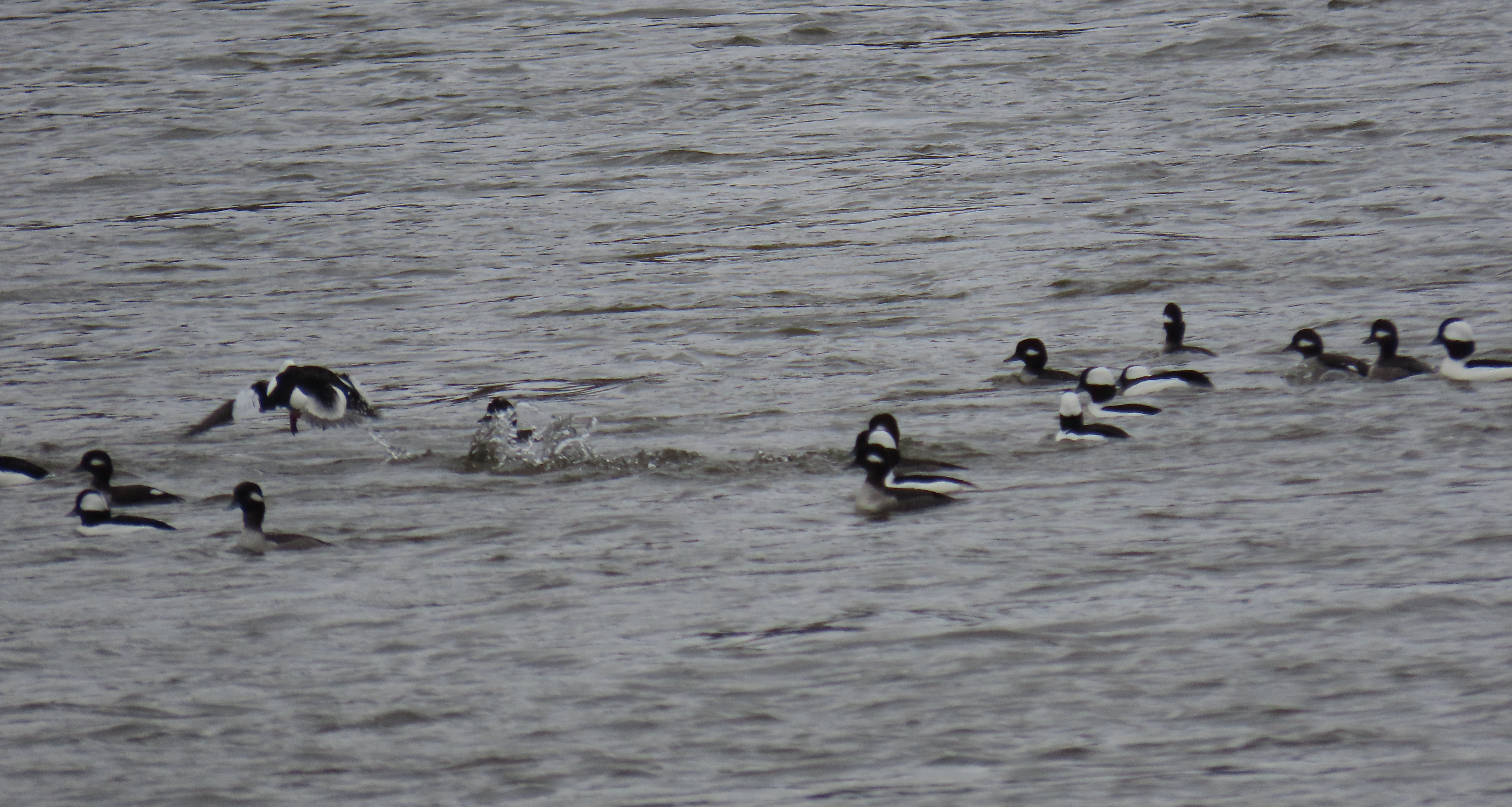 The center of a long Bufflehead flock at Pony Pasture on January 9th: