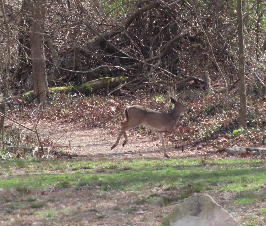 Young whitetail frolicking along the edge of the parking lot at Pony Pasture on January 7: