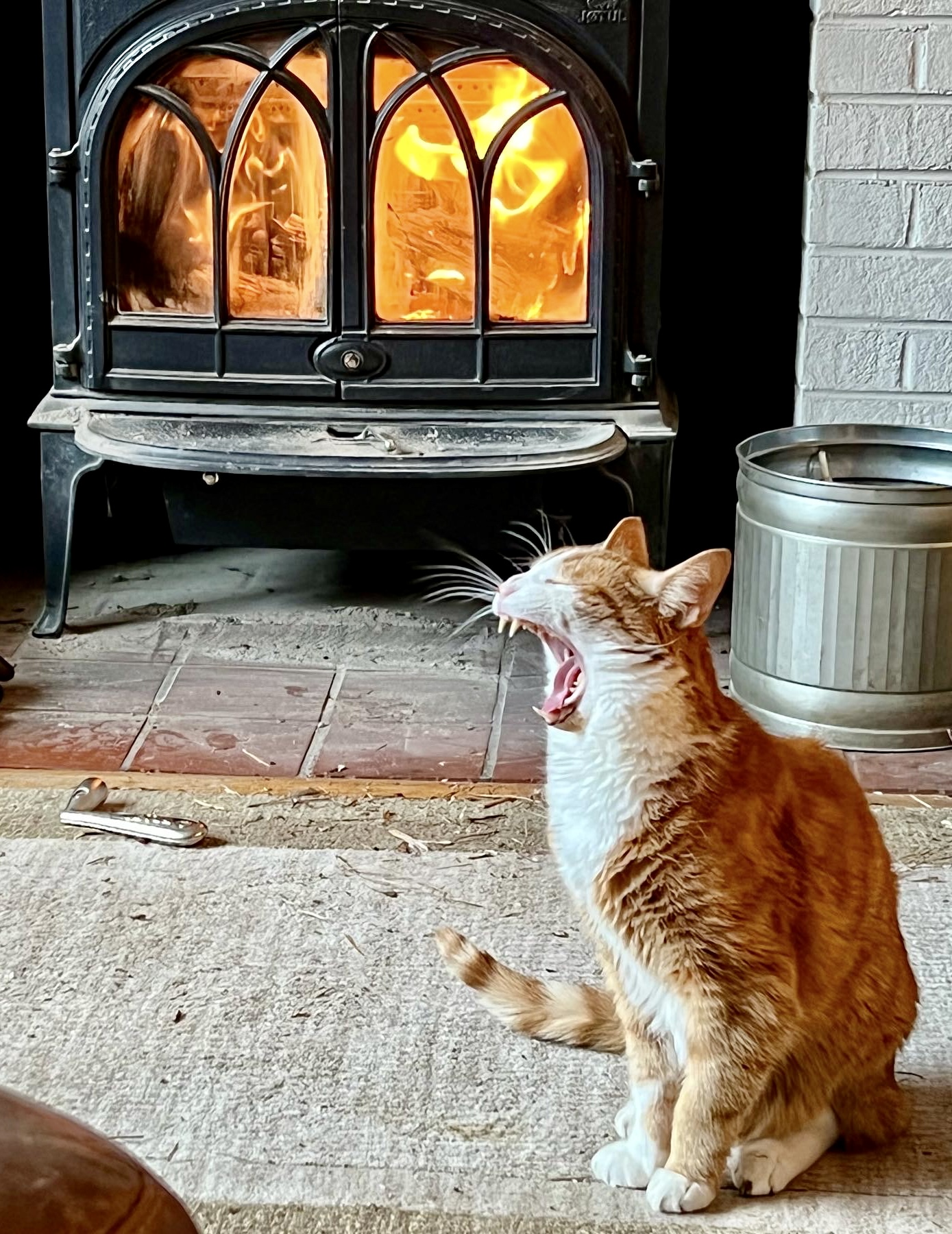 If you follow me on instagram you’ve seen practically an infinite number of pictures of my old cat Dash. I take them all with my phone. He’s a lifelong indoor cat and I don’t use my camera for indoor photography. They’re pretty repetitive – he sleeps a lot, usually near the woodstove this time of year. In this picture he was awake (for the moment) near the woodstove: