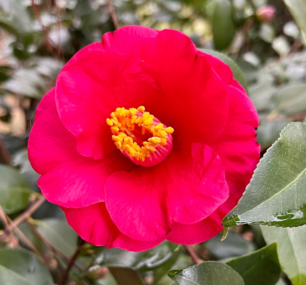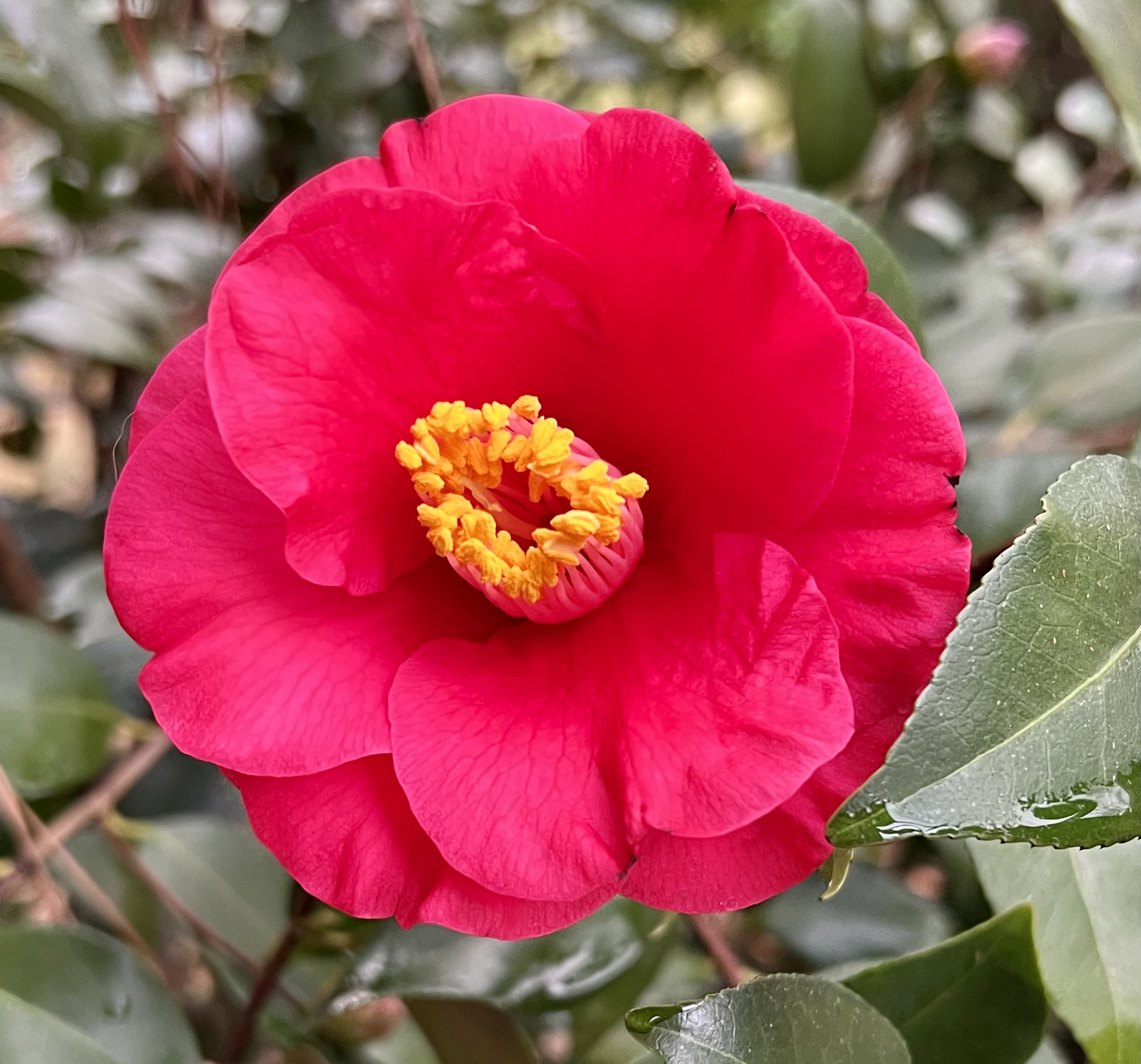 This big camelia is on our side yard; I took this picture about three minutes after the daffodil: