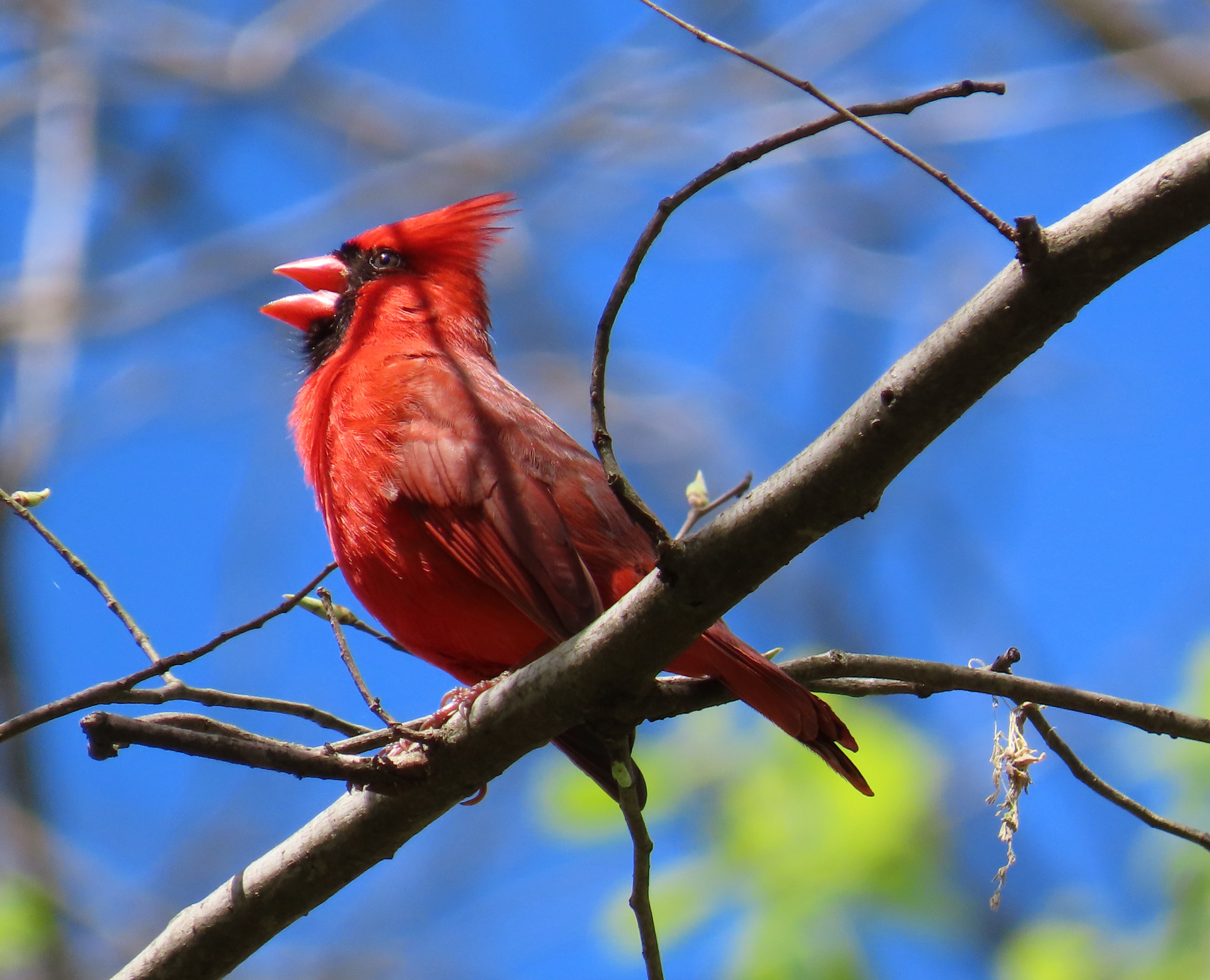 More birds though. Cardinals are our state bird and we see them nearly every day. But I was fortunate to have a handsome male perch and sing in the bright sunshine at Pony Pasture a month ago: