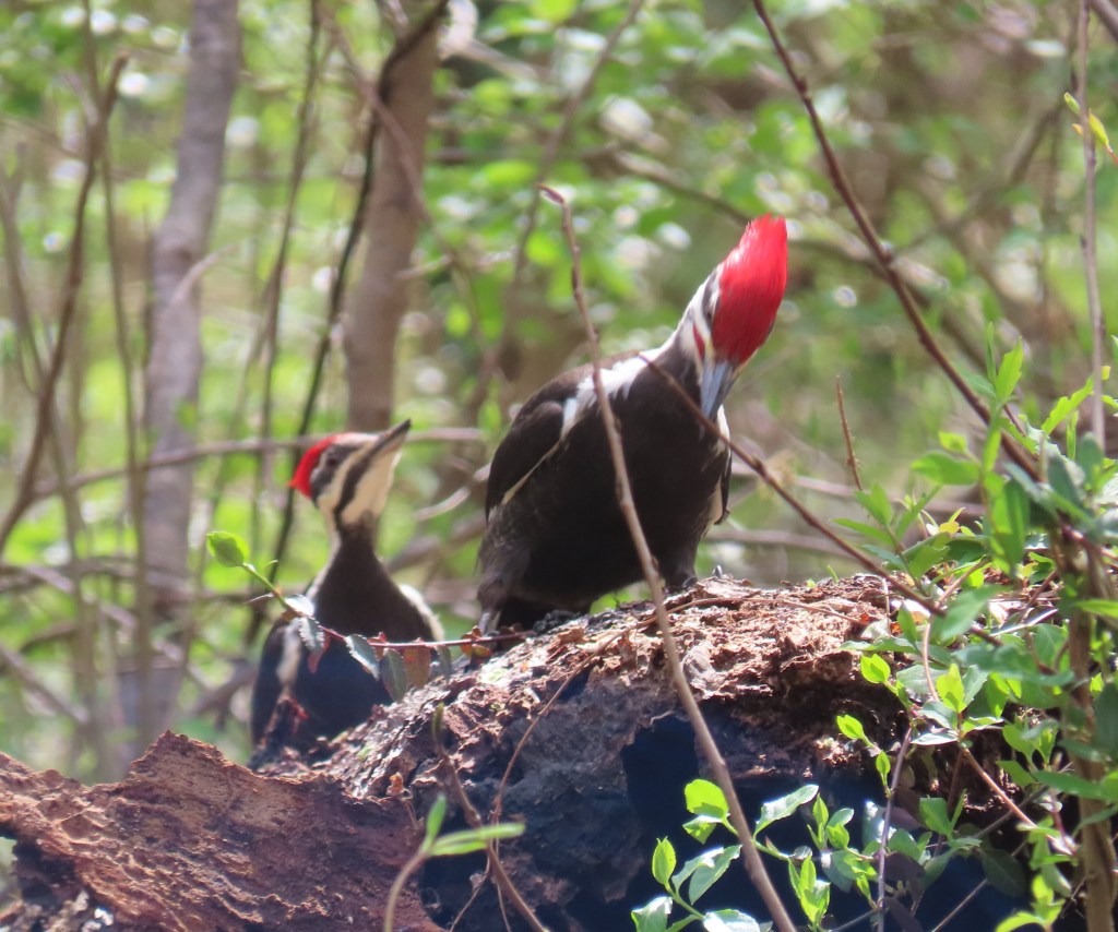 A pair of Pileated woodpeckers in late March at Pony Pasture. Male is in the foreground.