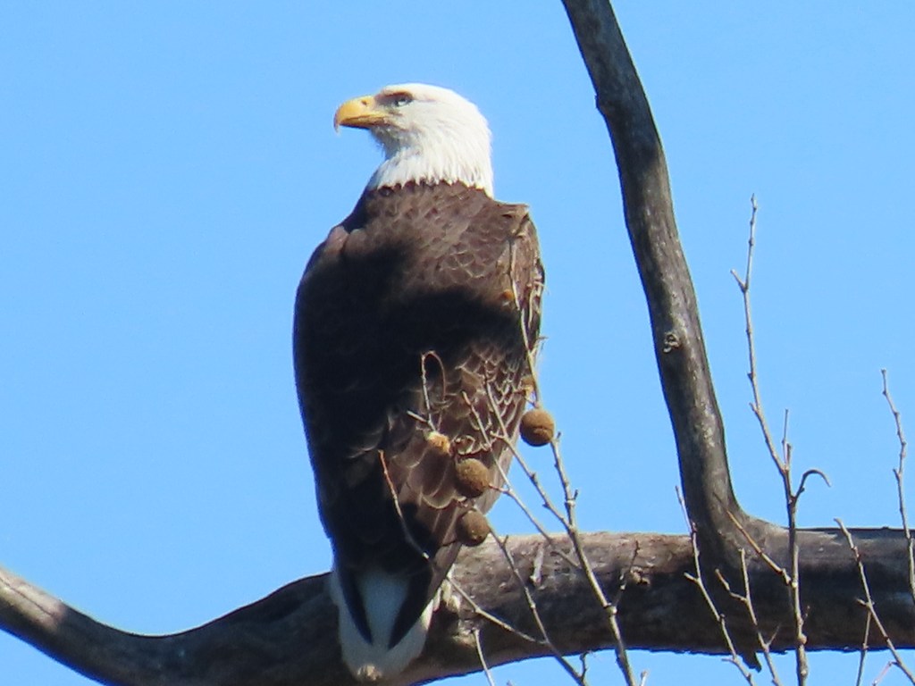 When I was young(-er), Bald Eagles were endangered. DDT is unbeatable as a synthetic insecticide. It kills mosquitoes so thoroughly it practically eradicates malaria in areas where it’s used. But it makes egg shells so weak that they break when they’re being incubated. Bald Eagles almost went extinct until we got rid of DDT here in the States. I will never not be amazed to see a Bald Eagle. And to see a pair is just amazing and stunning and remarkable and rewarding and I am beyond thrilled. Bald Eagles eat lots of fish (though they’re equally satisfied with road kill) and Three Lakes Park provides plenty of opportunities to fish. The tower they’re perched on is at a radio station on Wilkinson Road, just a couple of hundred feet from the water’s edge at Three Lakes. There’s an even bigger lake in a neighborhood just on the other side of Wilkinson Road, and the Chickahominy River is just a few wing flaps to the east. The Virginia Department of Wildlife Resources (DWR) says that “the Chickahominy River provides the angler with tidal river fishing at its finest.”