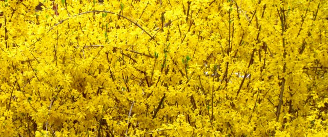When it’s spring in Richmond, take pictures of flowers. If you’re not looking at them, rub your eyes and start paying attention. They’ll be back next year, but they’ll also be gone soon. Look at them now – they’re here. As a friend once reminded me, “that’s why the call it ‘The Present’”. This enormous forsythia was in full riotous bloom right next to where we parked the car. If there had been two minivans parked behind it they would have been completely hidden. It was huge: