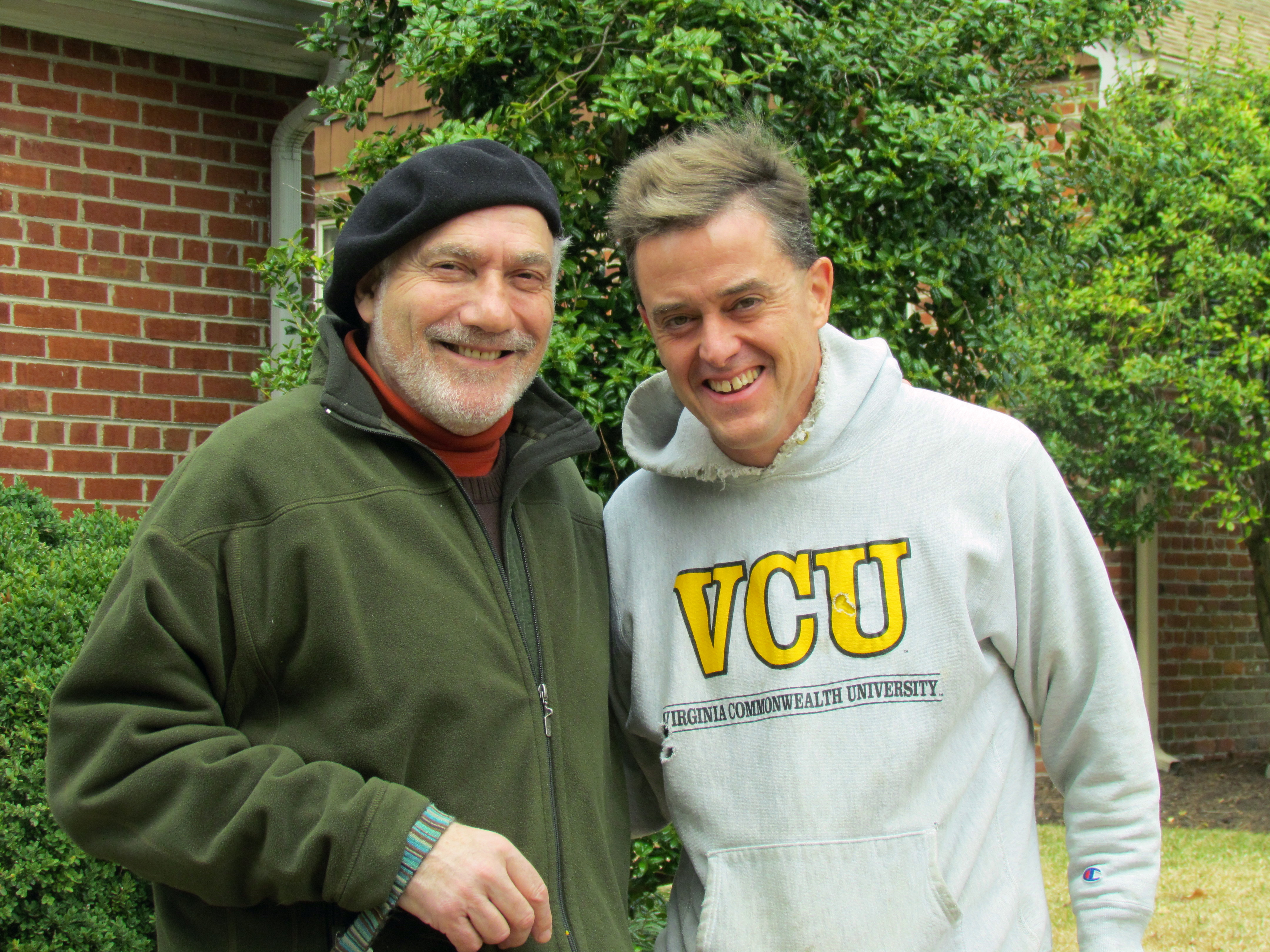 Chanin arrived a few minutes later and took pictures of Lou and me in the front yard. I’m wearing my threadbare VCU sweatshirt; I’m still celebrating our unlikely run through the 2011 NCAA tournament bracket. Only 8 teams left of the original 68 – and my alma mater is one of them! When we knock off Kansas tomorrow afternoon we’re in the Final Four! Whatever the outcome, I’m proud we’ve made it this far for the first time in VCU’s history. In addition to my ratty sweatshirt I’m wearing my chlorine hairstyle after swimming two miles to begin today’s celebration.