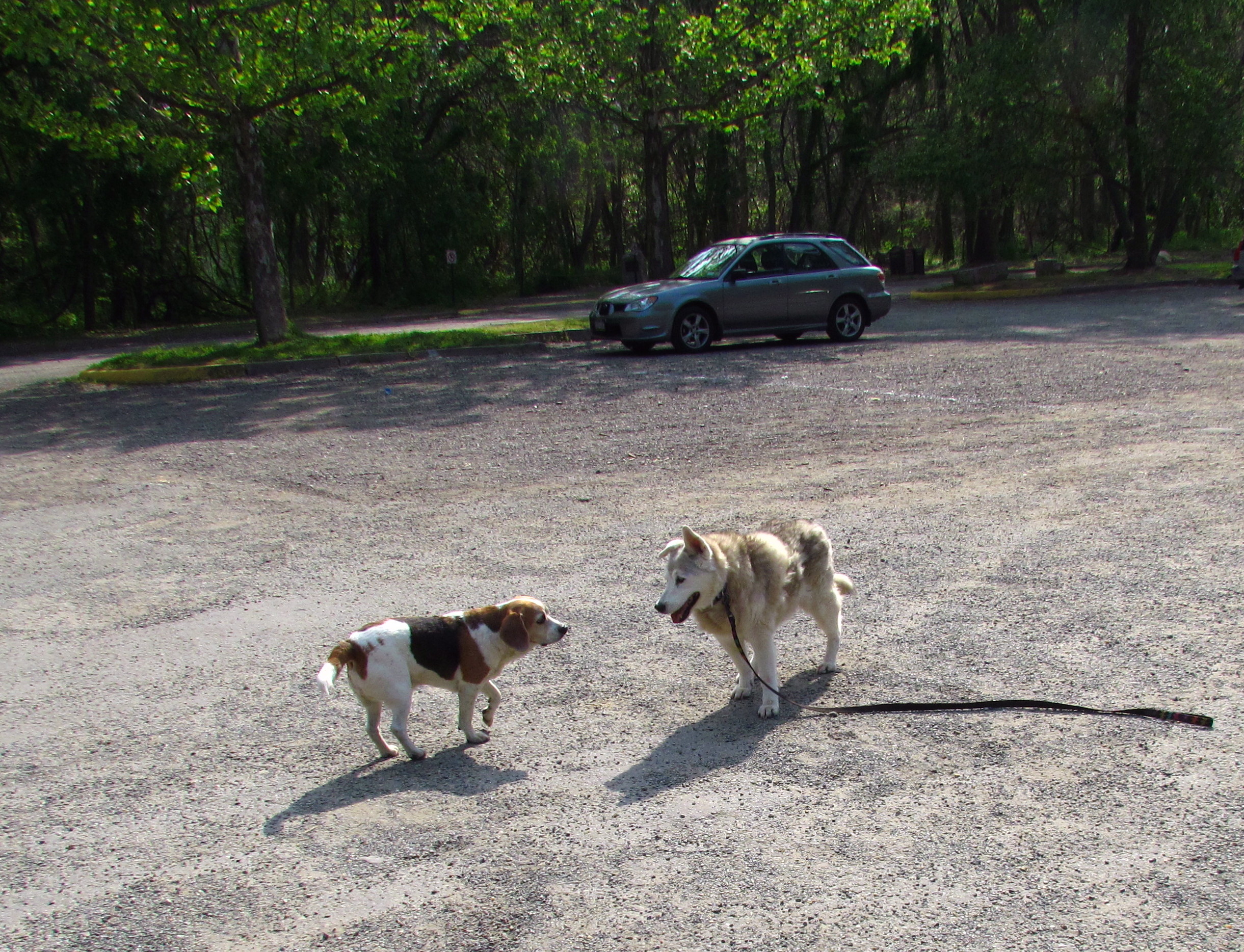 In the parking lot we met our friend Happy the Clown and his beagle. Ivory’s first visit of the morning: