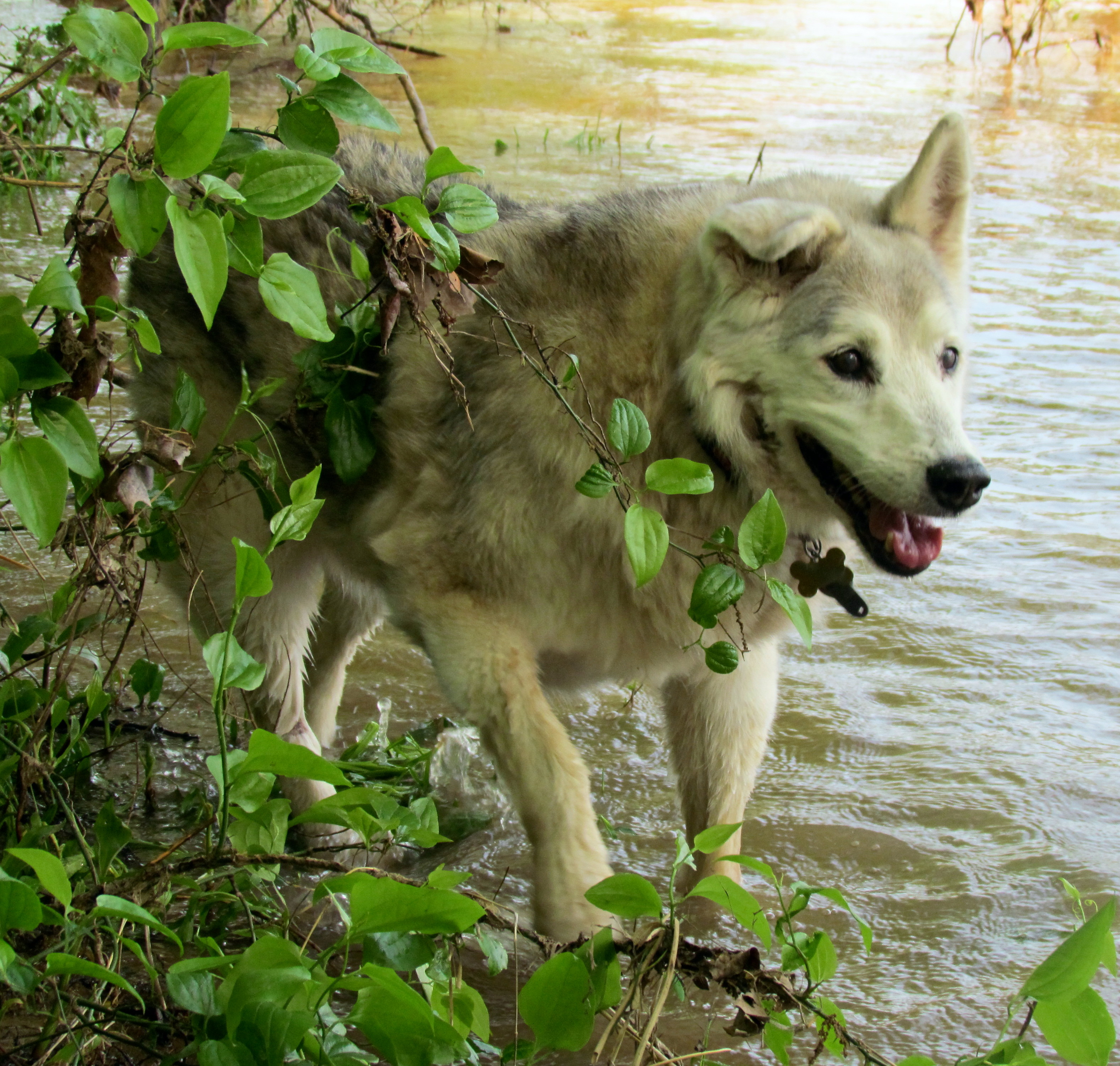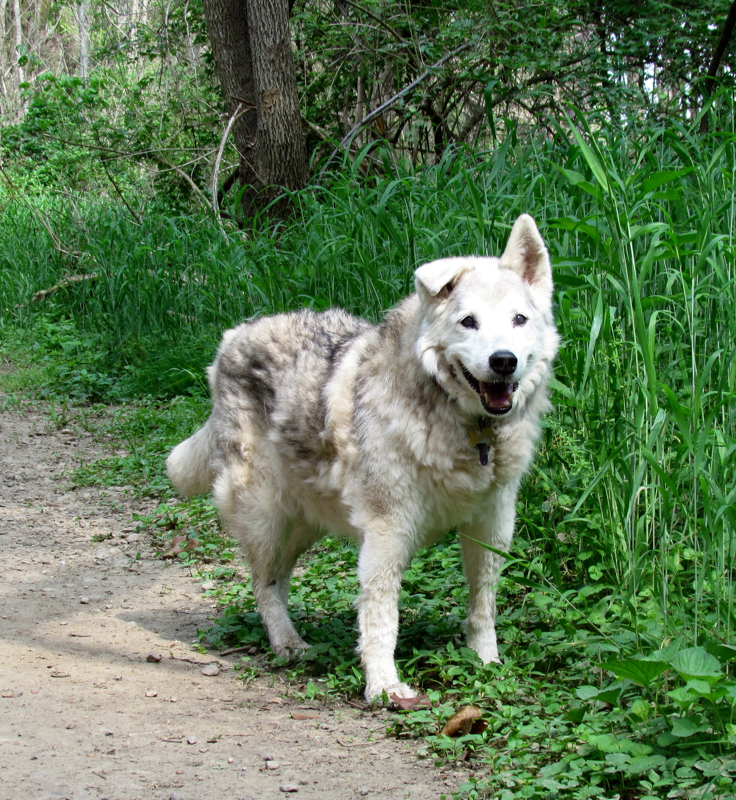 At seventeen years, Ivory is old by any standard. By the standards of sixty pound dogs he is ancient. He moves slower than the rest of my pack. You’ll see a lump on his left shoulder in some of these images. Walking is difficult for him. So he normally stays home when the rest of us go for our twice-weekly river hikes. But I was fortunate to have some free time this morning. Ivory and I left the other dogs home and enjoyed Pony Pasture by ourselves.