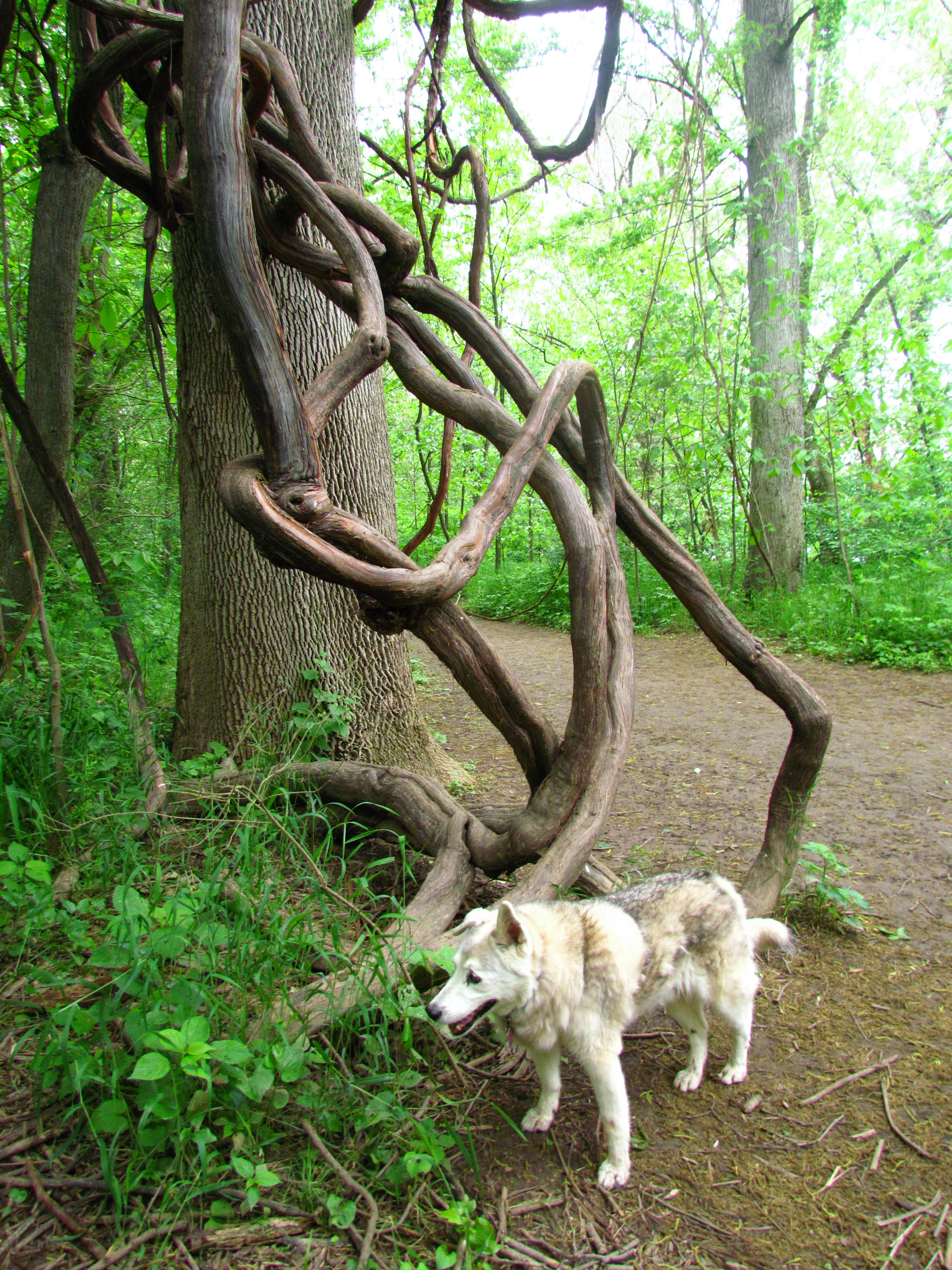 Speaking of mixed flora and fauna, check out this shot of Ivory traipsing through some big vines at Pony Pasture on Mother’s Day morning. This was before we left for the mountains!: