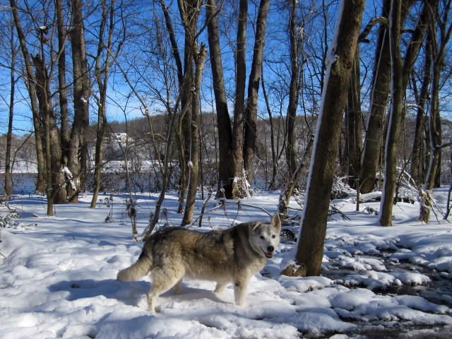I am a dedicated nostalgiaphobe. But this is a picture of my old bud in his element, at Pony Pasture, in the snow, near the river.