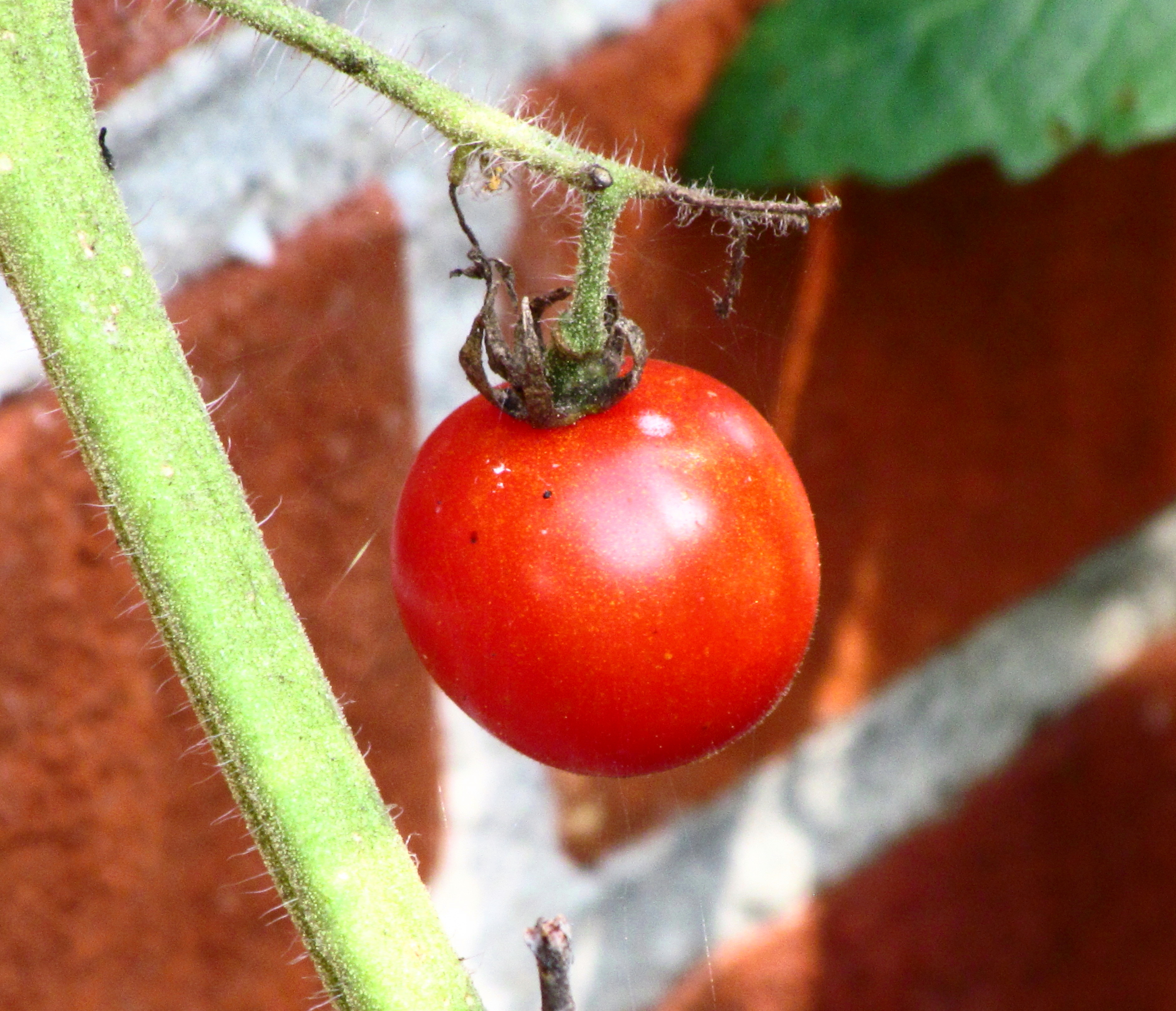 After pondering for some time – these tasks involve an inordinate amount of pondering – I cleaned out my gutters and my shed roof yesterday. I also spent time straightening the tattered remains of my gardening efforts for 2011. I still have a little handful of tomatoes: