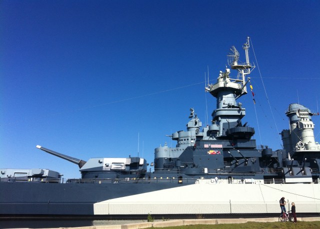I want to write so much more. But I am pressed for time. I may elaborate later; the experience was so rich it’s difficult to get it all across in one blog post. This picture is the battleship itself, the finish line, the next day just before I left. It’s the USS North Carolina: