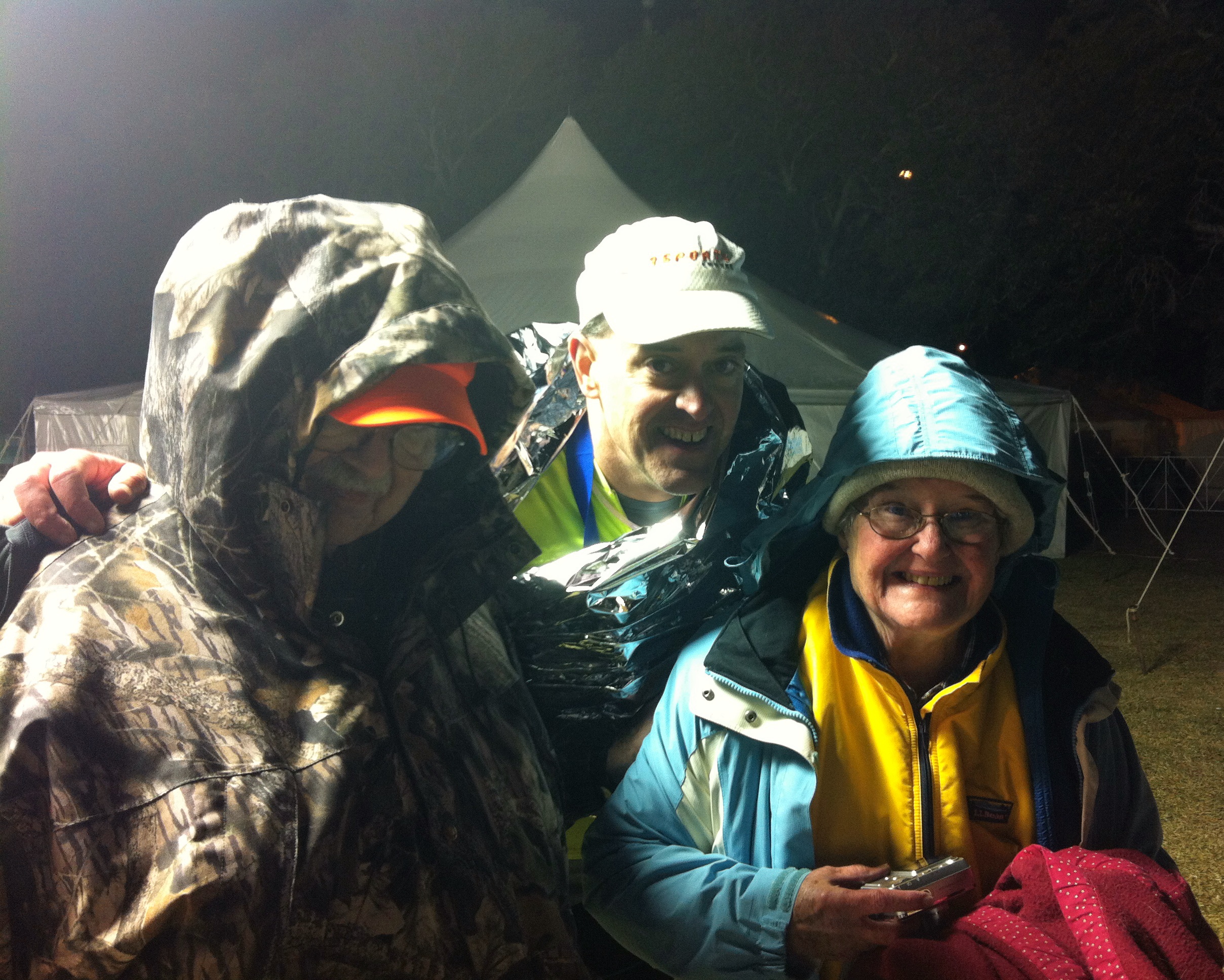 I just cruised in from there. Mom and Dad were waiting for me in the cold at the finish after my 140.6 mile, fifteen and a half hour jaunt: