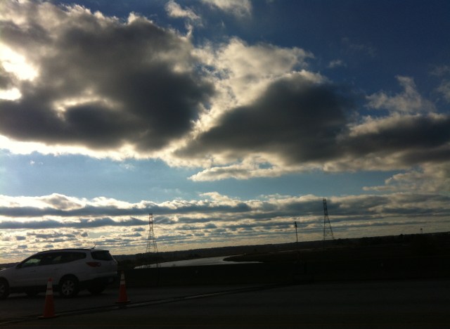 So I was overjoyed to take my helmet off and trade my bike shoes for running shoes and head out on the course. I’m guessing I took this picture as I crossed the first bridge on the first (13.1 mile) run loop. Judging by the time. It was pretty out: