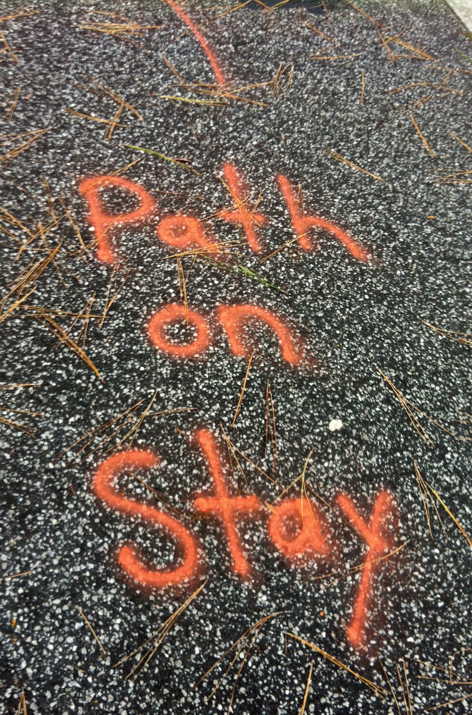 There were a few signs spray-painted on the ground. Here’s one I’m particularly fond of; it doubles as a life lesson: