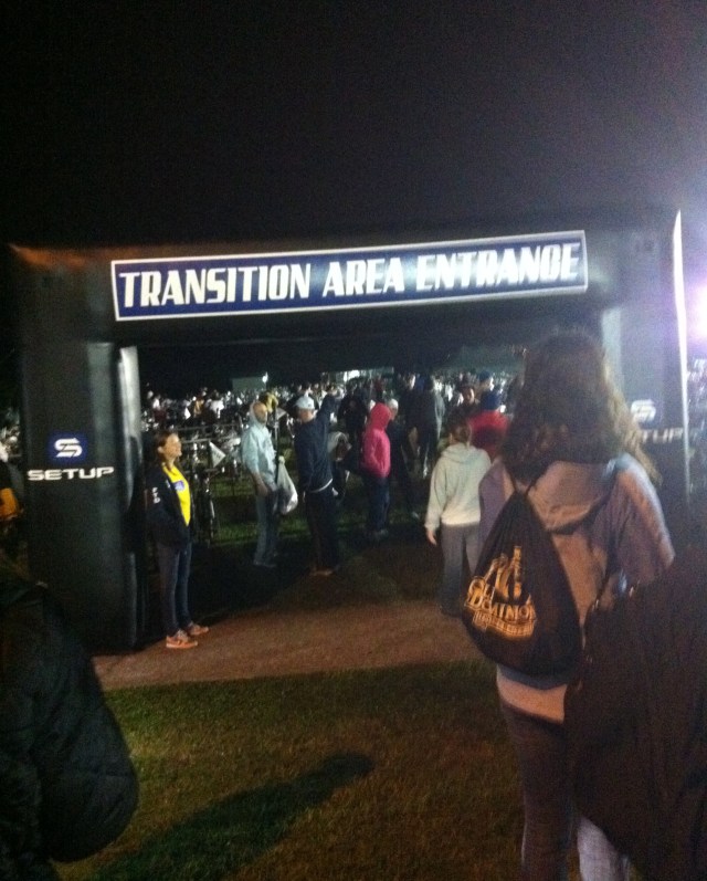 This was the entrance to T1. Our bikes and bike gear were here. We got on buses and rode them 2.4 miles up the beach for the swim start.