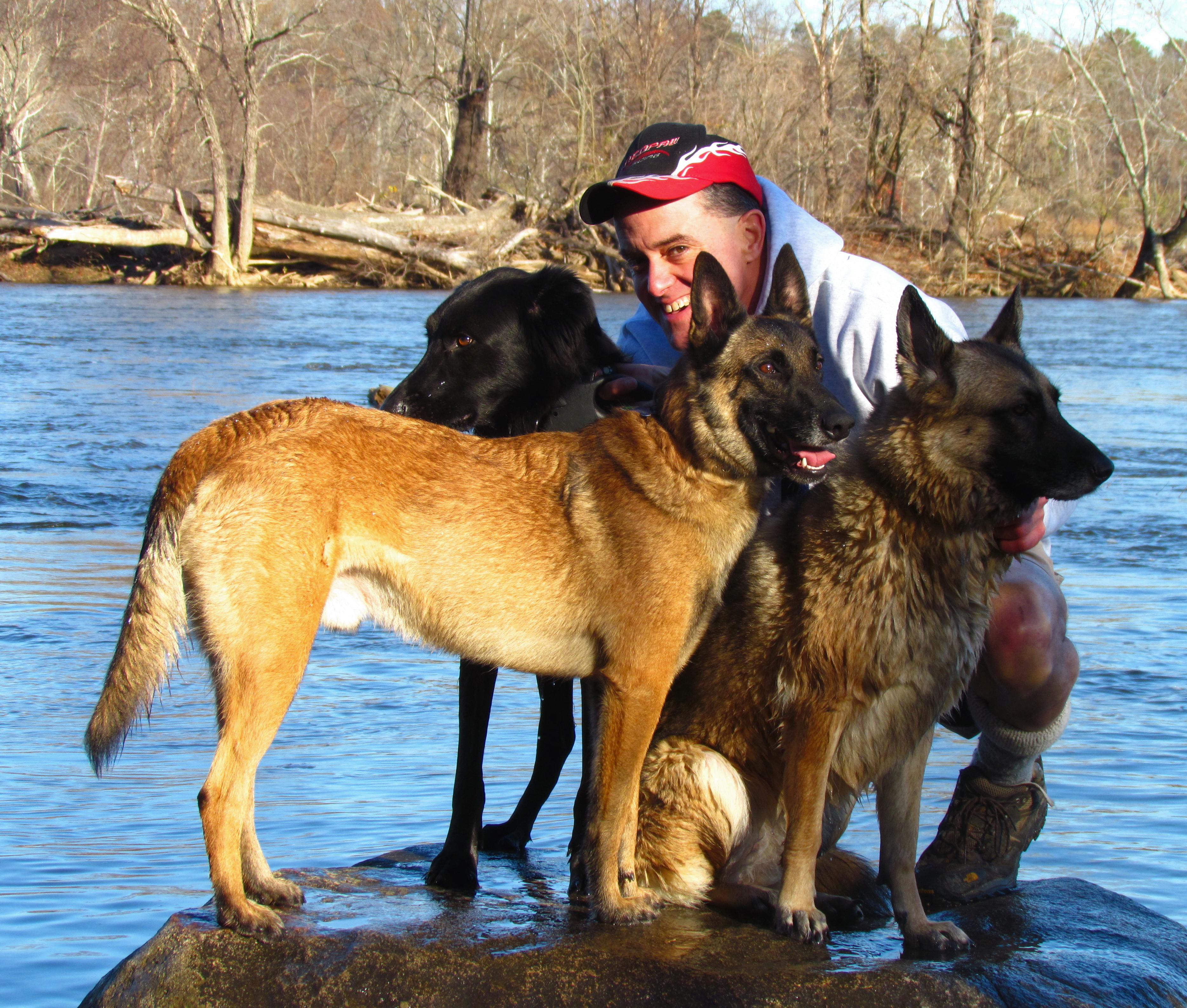 Evelyn was kind enough to join the dogs and me for our very early (7:00 AM) Thursday river hike. It was Thanksgiving and the weather was stunning. She took this nice picture of the four of us: