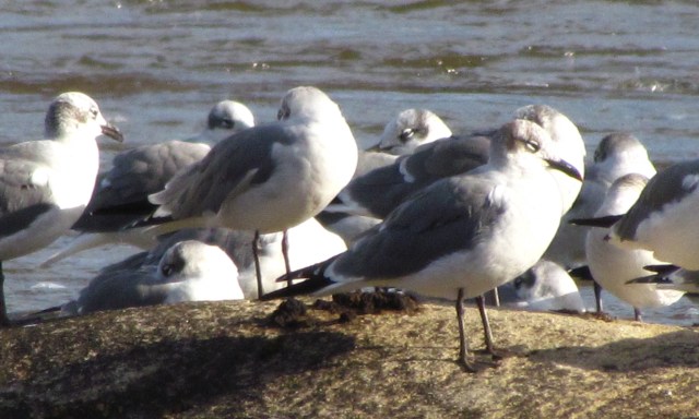Sometimes big flocks of seagulls stop in at Pony Pasture. I am not good at telling one kind from another. There were hundreds. This is just a handful: