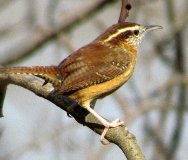 We also saw this sweet (sweet looking, anyway) little wren. I regret not getting a better photograph. I guess it’s a Carolina Wren, just because they seem most common in this area. If anyone knows different, please enlighten me: