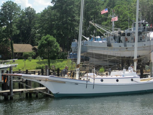 Another highlight of our journey was visiting Evelyn’s friends Maria and John. Maria fixed us a fantastic meal and we looked at their lovely 38 foot sailboat the Charlotte E. Foster. Click here to watch a 3 minute video of her construction. She was built in 1975. This picture is from her facebook page: