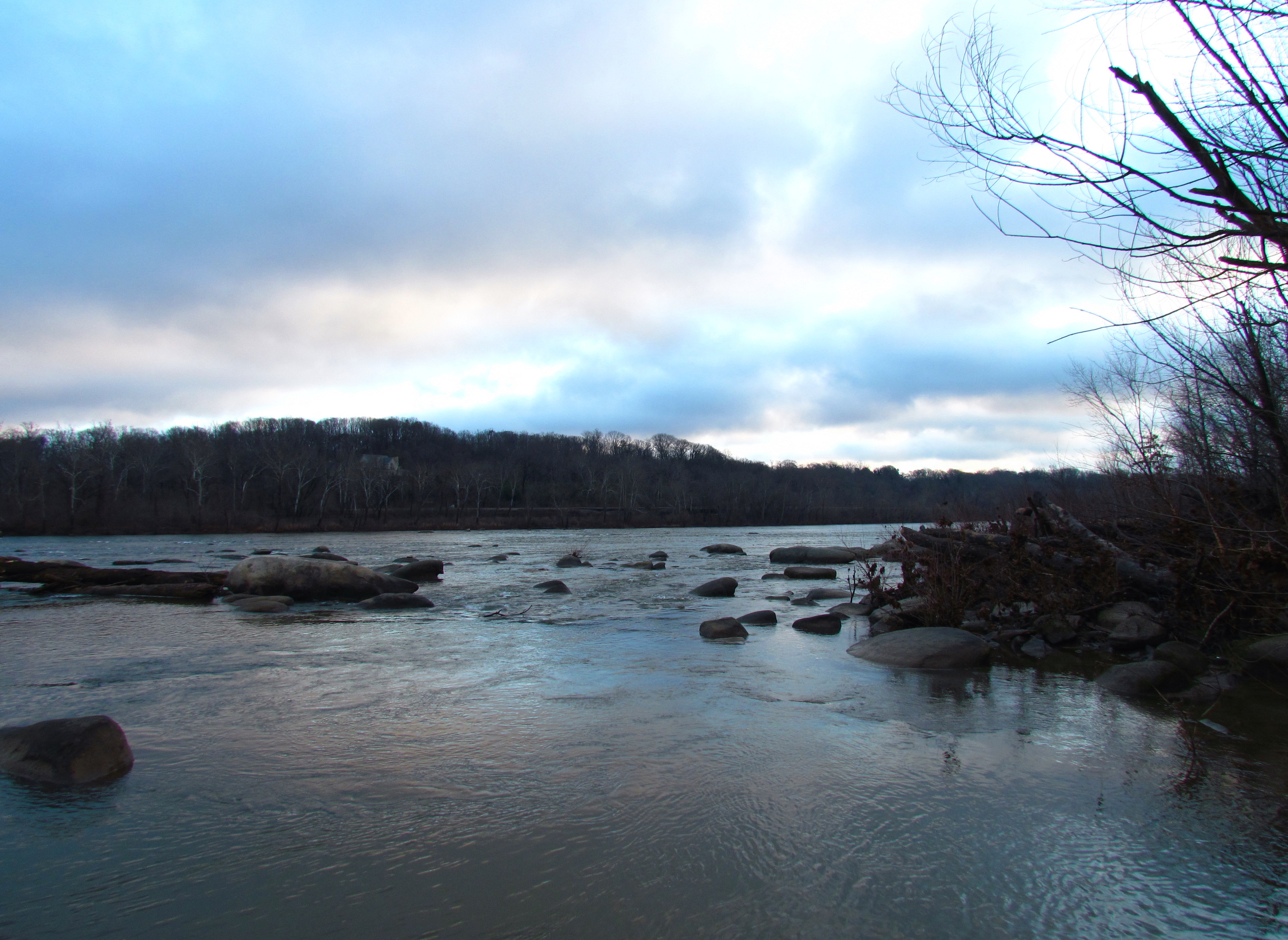 My arm is getting better, although it’s not back to Christmas Eve (the day before I hurt it) form yet, which I suppose will take a while. I swam once last week and although it was slow and awkward, it was nice to be back in the water. I have  another checkup on January 30 and hopefully can remove my sling. I’ve already regained a lot of mobility and the pain’s gone away. I even drove my stick shift (my “dog car”) yesterday for the first time since I hurt my arm. It was a good thing; we took the dogs to the river in it and things were muddy down there. Fine for my dog car (2001 Subaru Forester with >200,000 miles). For my “people car” (2011 Subaru Forester with <1/10 that mileage) not so much.