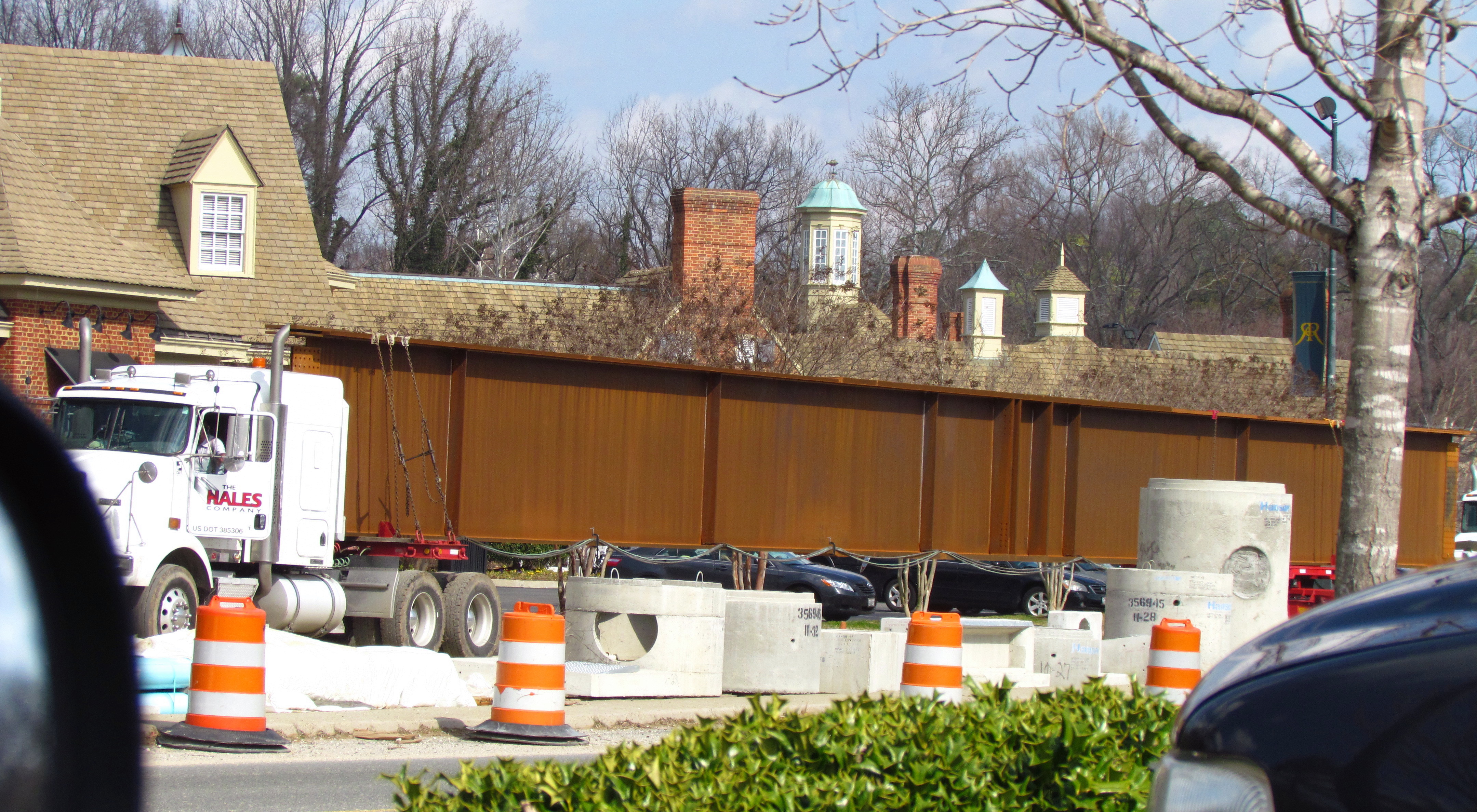 On an entirely different note, we cross the James River to get to Pony Pasture on the 50-year-old Huguenot Bridge. It is in the midst of a multi-year replacement project. The base of the new bridge is girded by girders. If you were wondering. They bring them down on 18 wheelers. This picture is taken from the Starbucks parking lot. One end of the bridge has Starbucks and the other end has Pony Pasture; we use it regularly!: