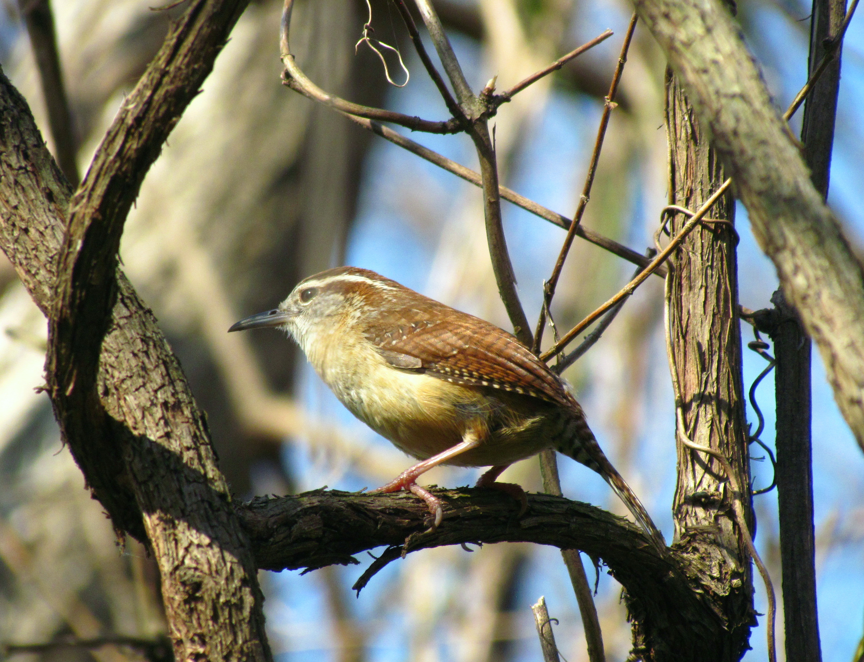 I also love that picture of the wren. I wish I could more reliably predict when a picture will look that nice. It is a good looking little bird, though. Very cooperative to perch there on that interesting vine in flawless light with blue sky behind it. I think males and females are nearly indistinguishable. They’re both very cute! Have a great day,