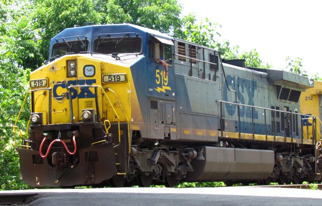 If you’re not a train person you’ve probably long ago abandoned this blog. A coal train was down there waiting when we visited last week; this engineer had his arms hanging out of the cab of the locomotive. Locomotive #519 and the one behind it, #212, are both GE AC44CW locomotives. Although it is clearly written  “CW44AC” on the side. Hmm. The “AC” means “Alternating Current” power. “44” means 4,400 HP. I am uncertain what “CW” means. If you know, please enlighten me.