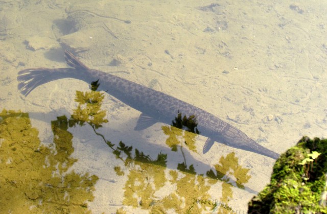 Longnose gar – that’s quite a fish. About 2 seconds later it gobbled up a little sunfish that swam past.