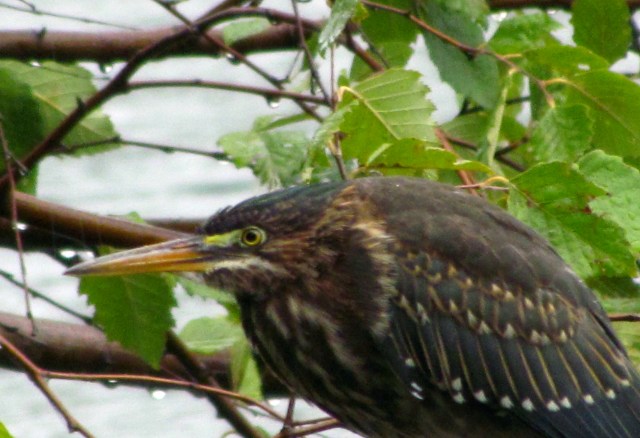 We were hiking in the rain a week or so ago and a green heron popped up and flew off a few yards. He doesn’t look too happy here: