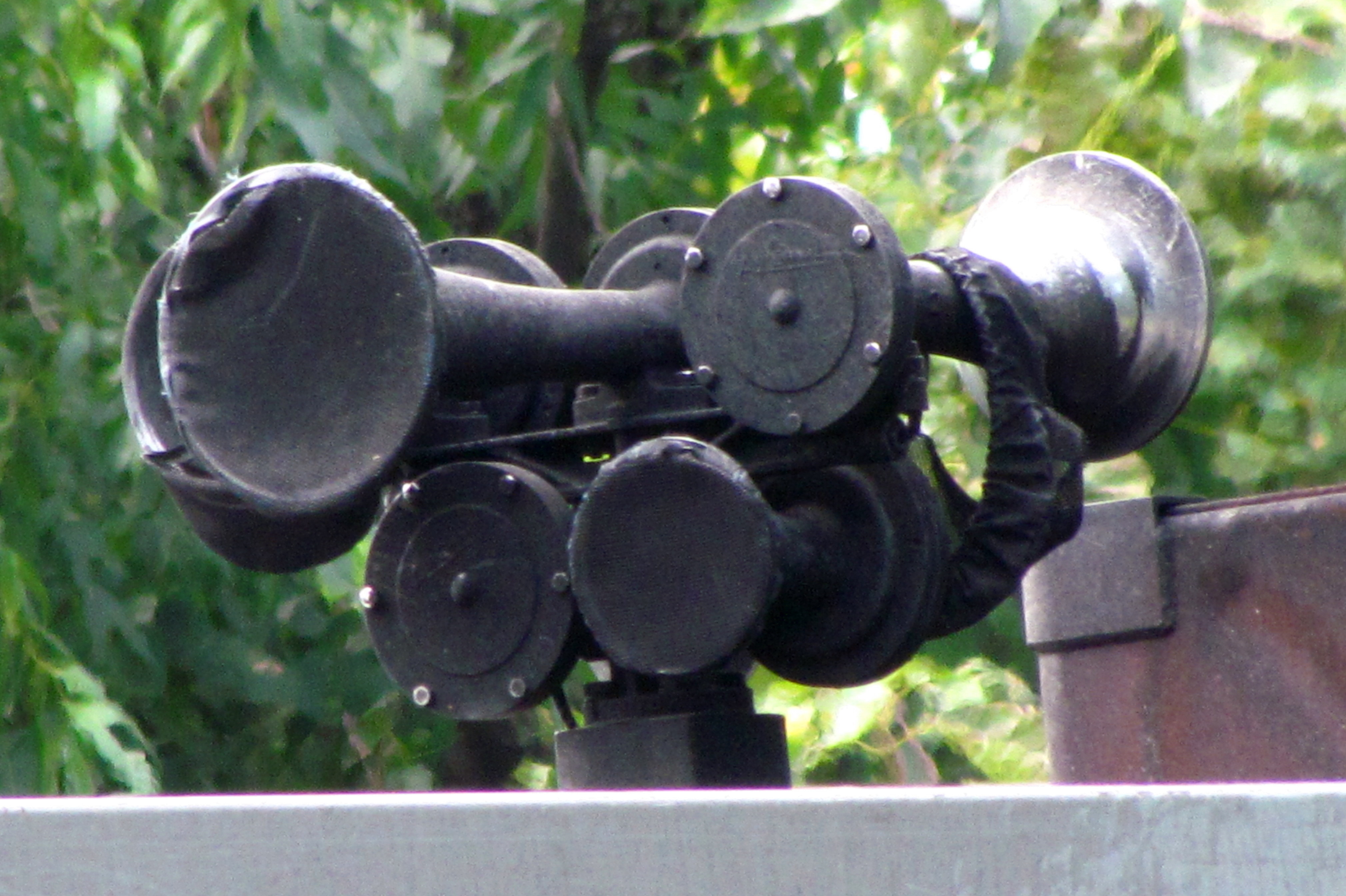 Closeup of locomotive horns. Isn’t that wild? And what in the world is that thing wrapped around the back?