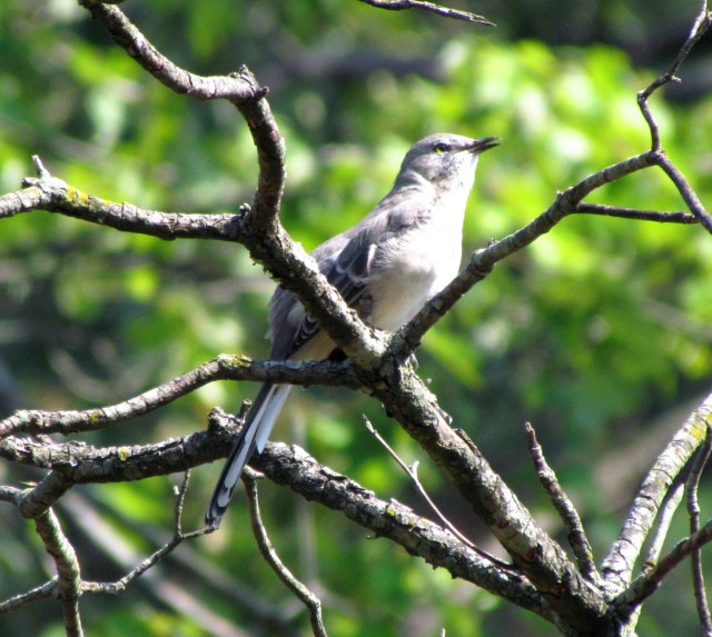 Harper Lee published the Pulitzer Prize winning To Kill A Mockingbird in 1961. I heard an interview with her not long ago and the interviewer asked her why she didn’t publish anything after Mockingbird. She responded that “when you start at the top, there’s only one direction you can go.” You may or may not agree with that but it’s among the greatest American novels. I took the following picture in my front yard, of this mockingbird in the top of an old dogwood. And Ms. Lee can provide the caption, taken here from the book: