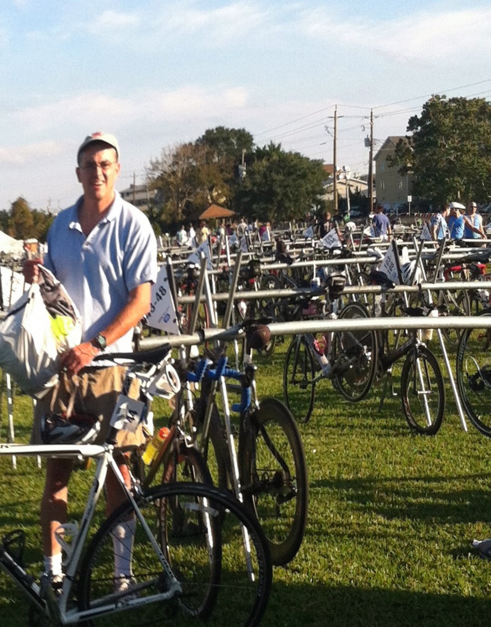 Rewind to the day before when Evie took this picture of me on the dock. That’s the channel we swam down in the morning, where we climbed out of the water and ran to the changing tents to get ready for our bike ride.