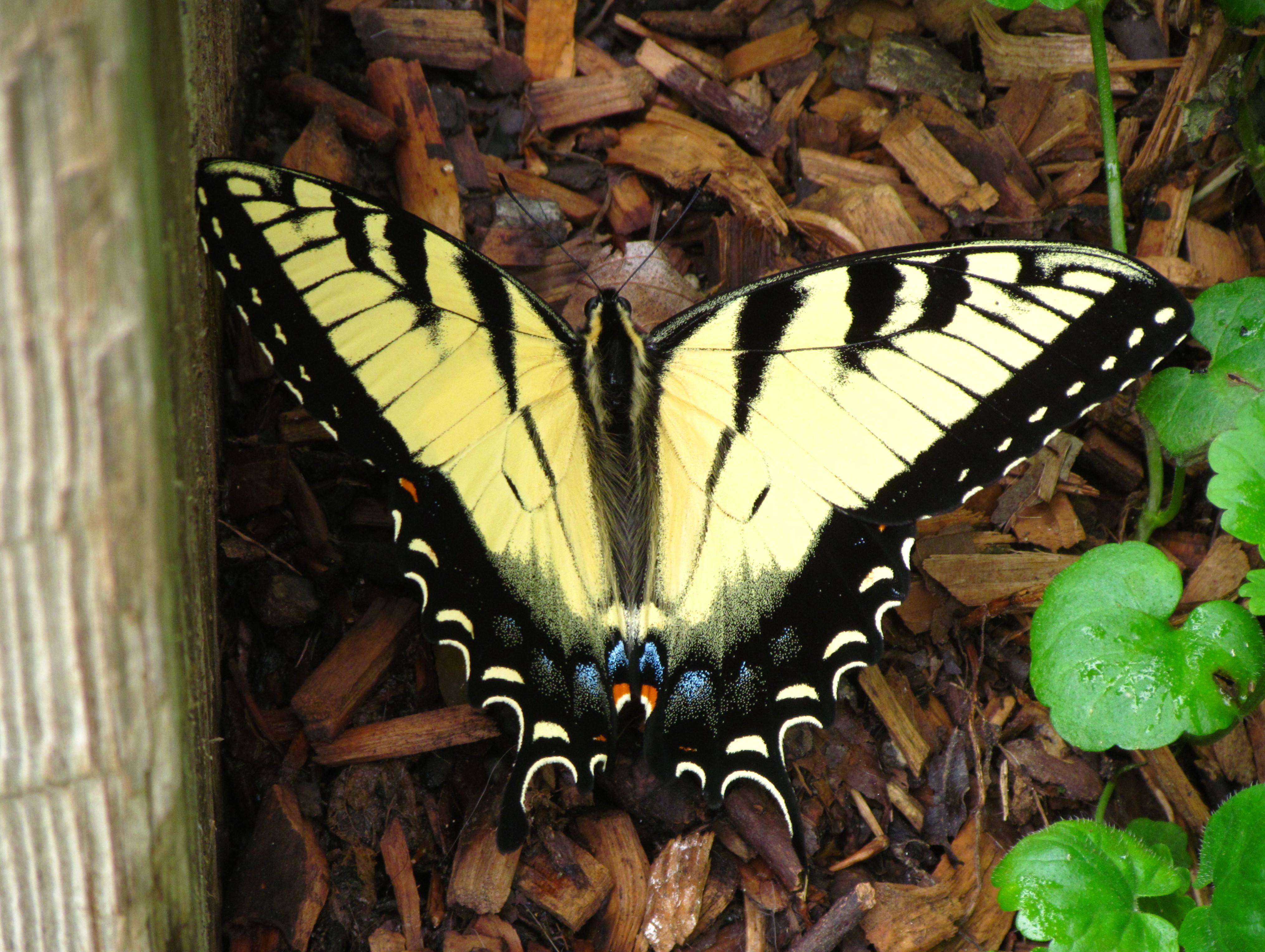 A lovely female (you can tell by the blue on her wings) tiger swallowtail from the Pony Pasture parking lot: