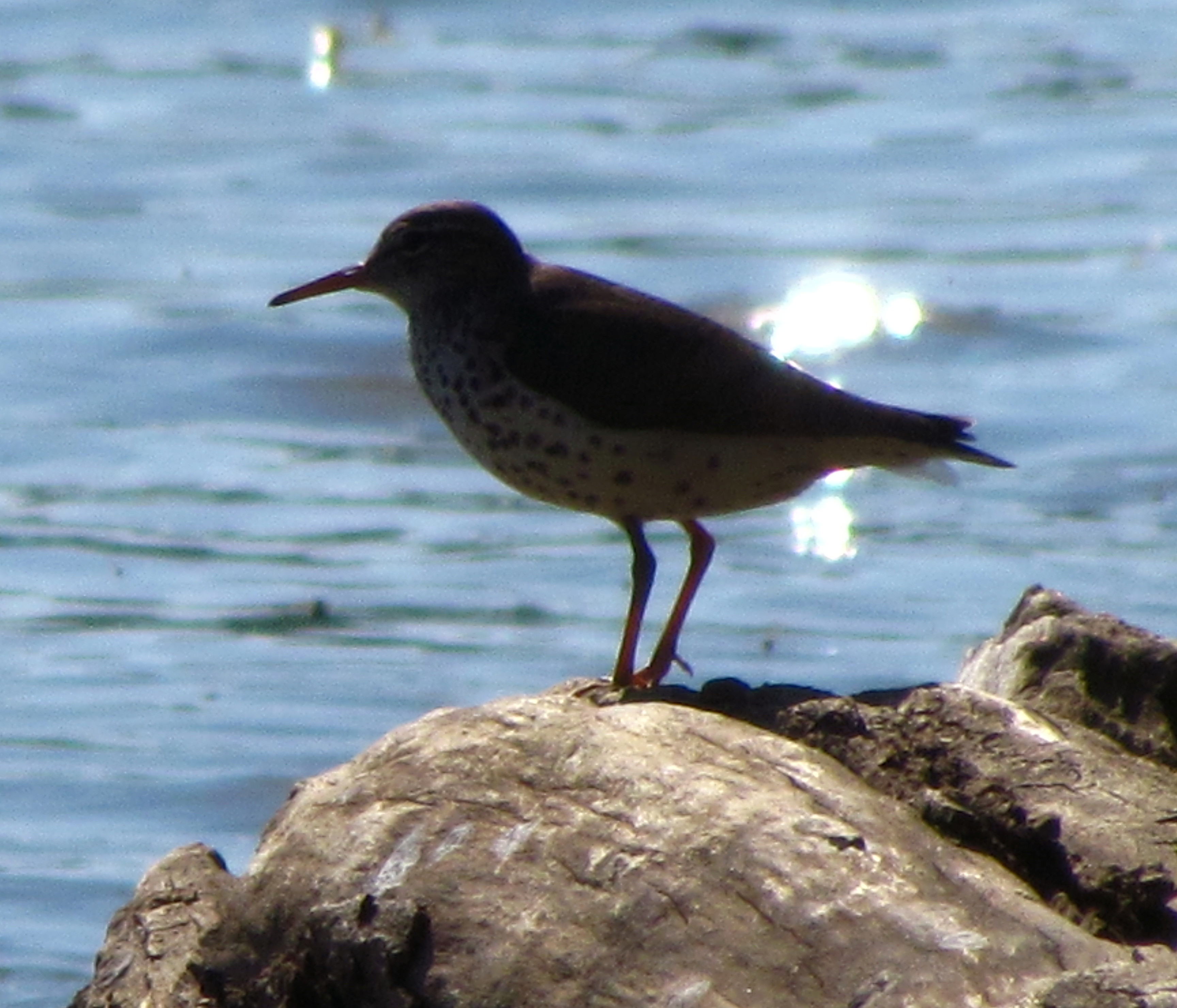 I’m going out on a limb here. But we hear a lot – a whole lot – about climate change. I’ve only heard bad things about it. But there are some good or neutral things too. I may be seeing statistically predictable variations that I just haven’t noticed in the past. But I’m seeing things (in this case, a bird) at Pony Pasture that I’ve not seen in the past. Maybe they’re here regularly and I just haven’t seen them, but this was a first for me in 10+ years of bird watching down there. Unimpeachable sources (thanks Evie and Kim and Lynda and Katie and Gilpin!) tell me this is a Spotted Sandpiper. I enjoy this description from The Cornell Lab of Ornithology: “The dapper Spotted Sandpiper makes a great ambassador for the notoriously difficult-to-identify shorebirds. They occur all across North America, they are distinctive in both looks and actions, and they’re handsome.” “Dapper” – isn’t that a fun word?: