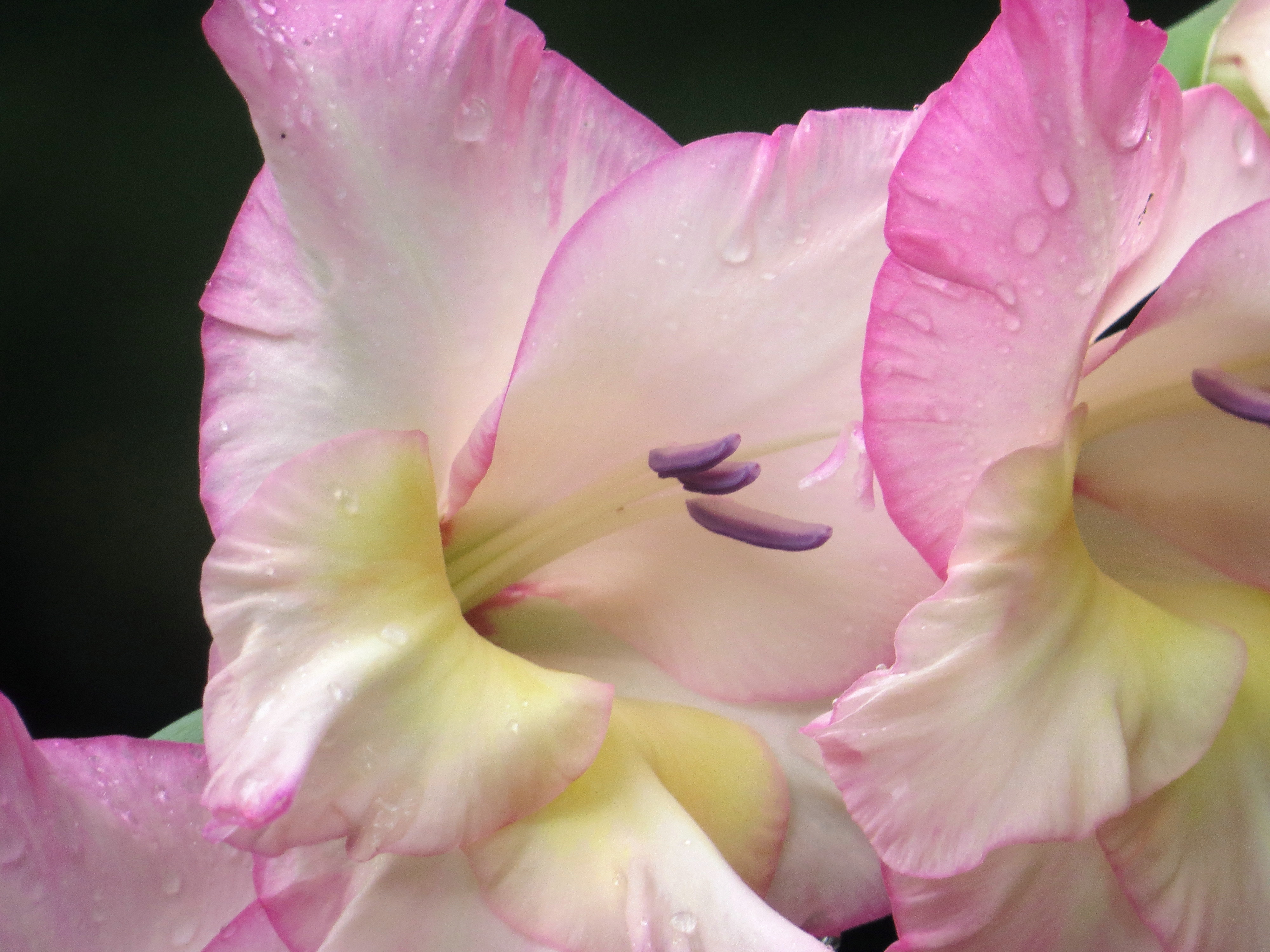 In July this delicate gladiola bloomed in our dog-pummeled backyard: