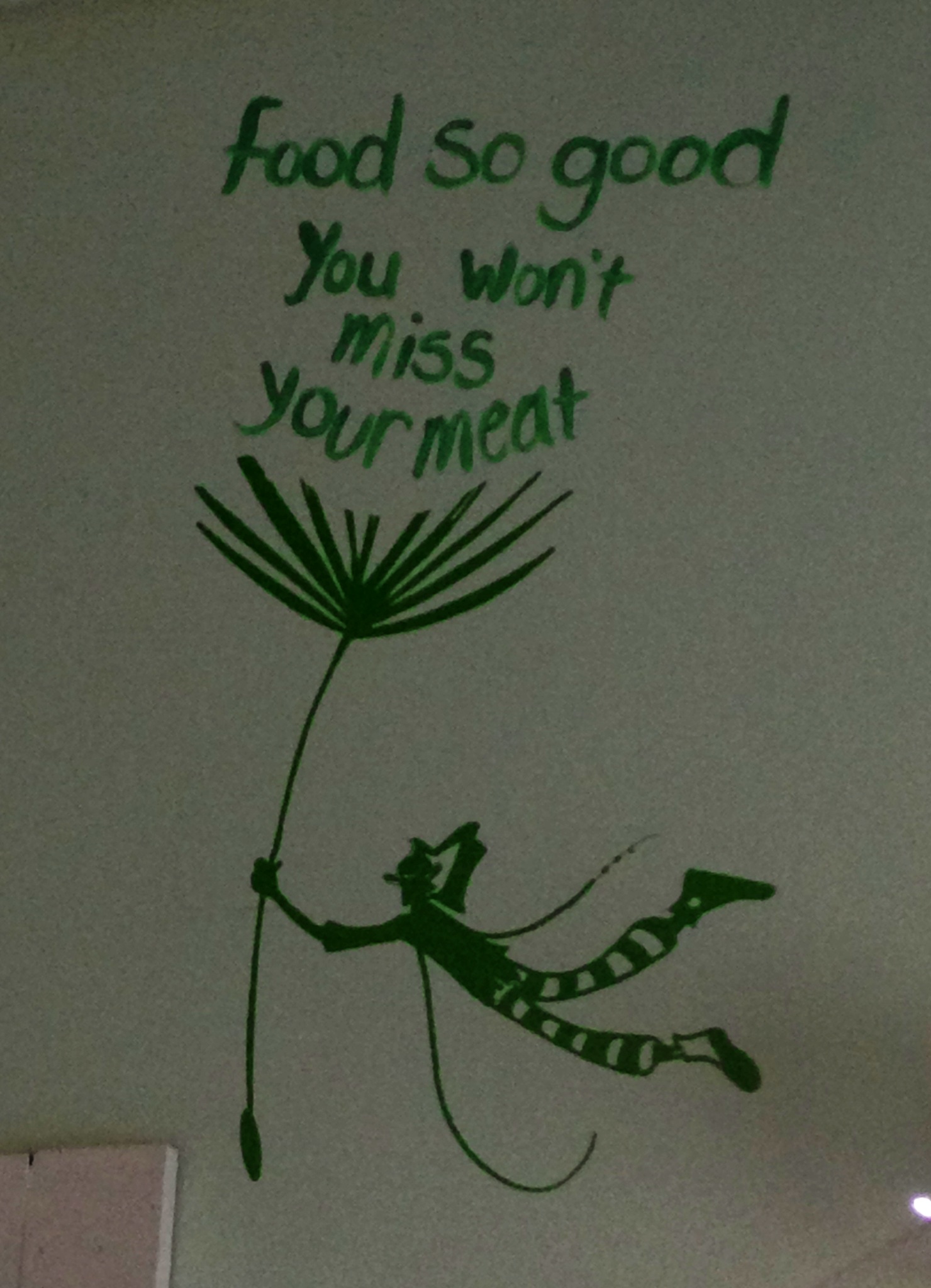 Their slogan: "We're not vegetarian - we just don't eat meat." But oh my goodness you have to try that place out. It is beyond compare.