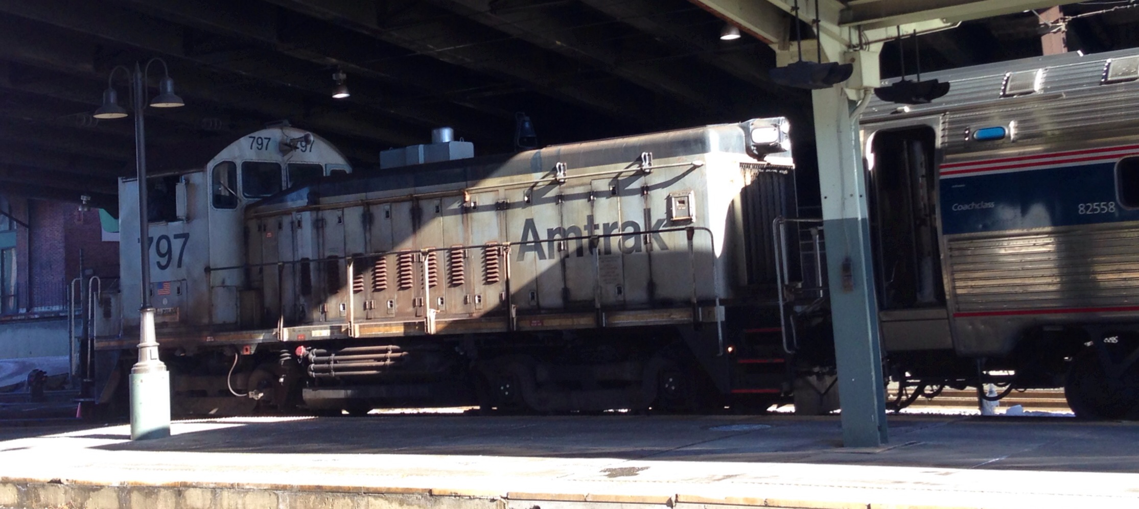 When we got off in DC this old Amtrak switcher was shuffling cars around in the station. This one has 1,000 horsepower. For comparison, CSX regularly runs coal trains with single engines that have 6,000 horsepower. But this guy’s not moving any coal and there are no mountains in sight: