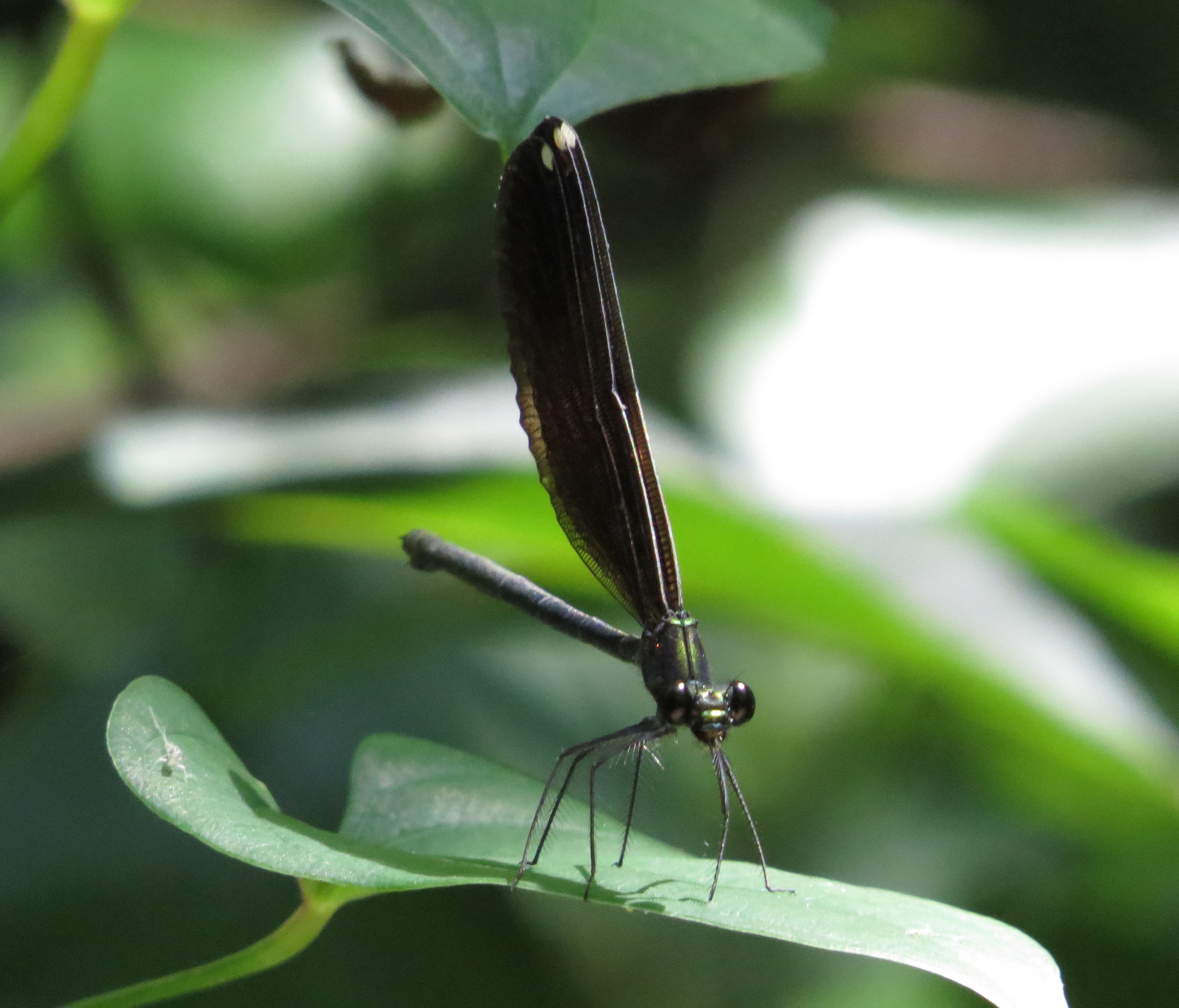 I saw a pretty female ebony jewelwing just as I was leaving the park Thursday: